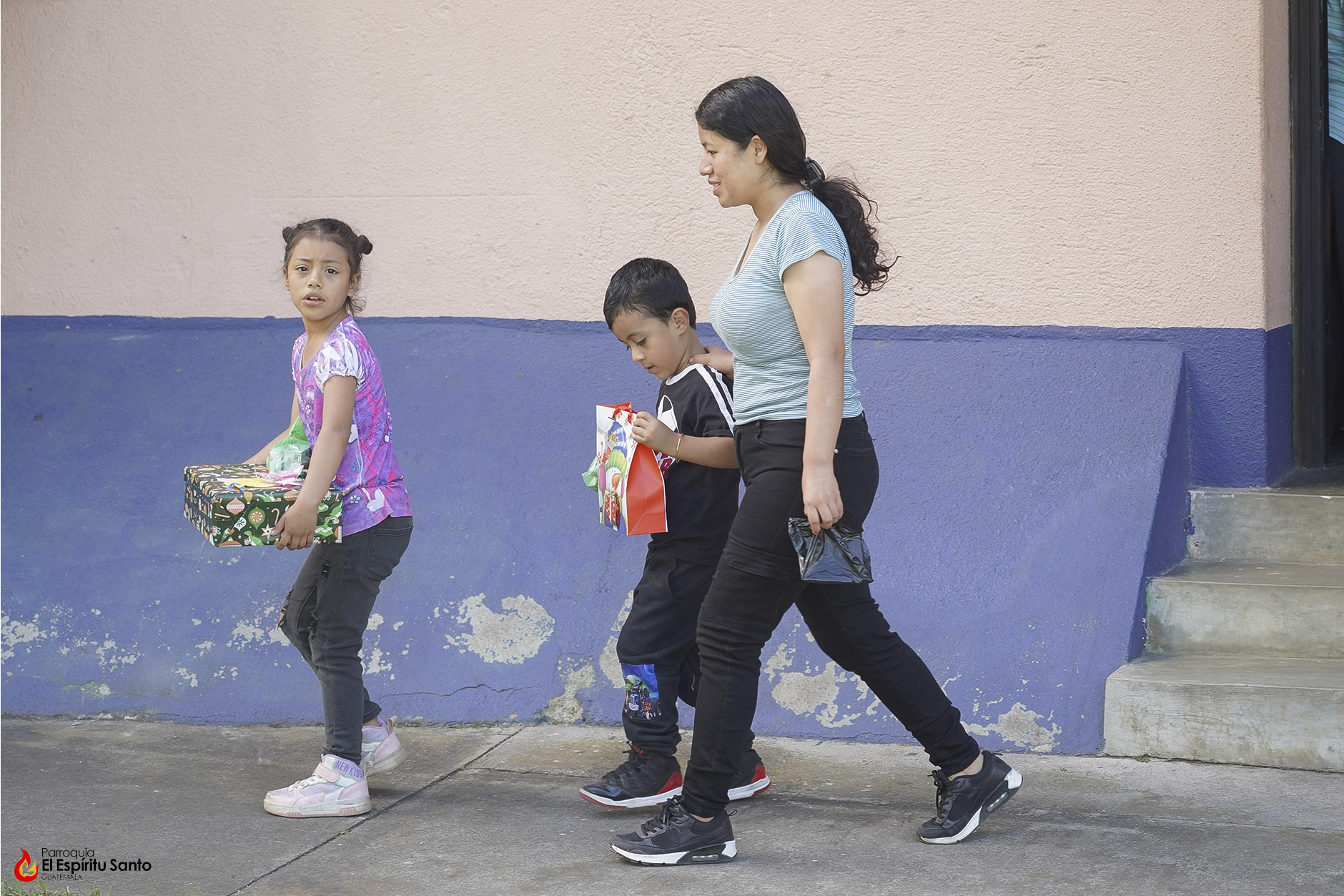 Dicha entrega se lleva a cabo gracias al apoyo que brinda la feligresía quienes, durante las semanas previas, donaron cada uno de los regalos que fueron dados. Para ello, cada persona tomó una de las tarjetas, que fueron colocadas en un árbol de navidad durante las misas dominicales, y que contenía el nombre y la edad de alguno de los niños para que luego pudiese llevar el regalo en oficina parroquial y, de esta manera, ser entregado al pequeño en este día.