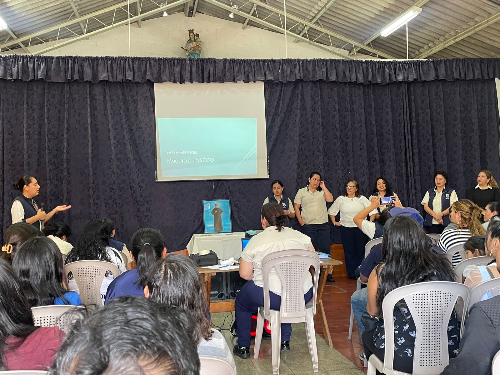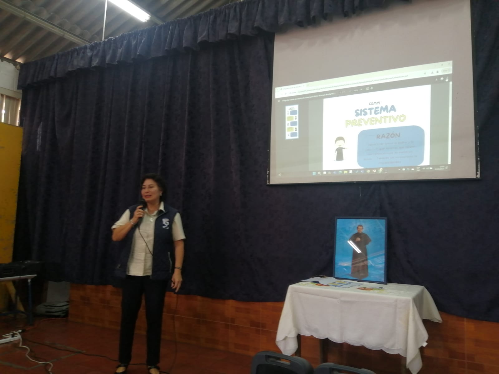 Posteriormente, la pastoralista, acompañada de algunas maestras, explicaron a los padres de familia quien fue Don Bosco, la obra que inició en Turín y que sigue trabajando por la juventud hasta nuestros días. Con la utilización de videos, explicaron a los presentes cual es el Sistema Preventivo, mismo que es aplicado en todos los colegios salesianos, y como la Congregación Salesiana se ha expandido a 137 países en todo el mundo.
