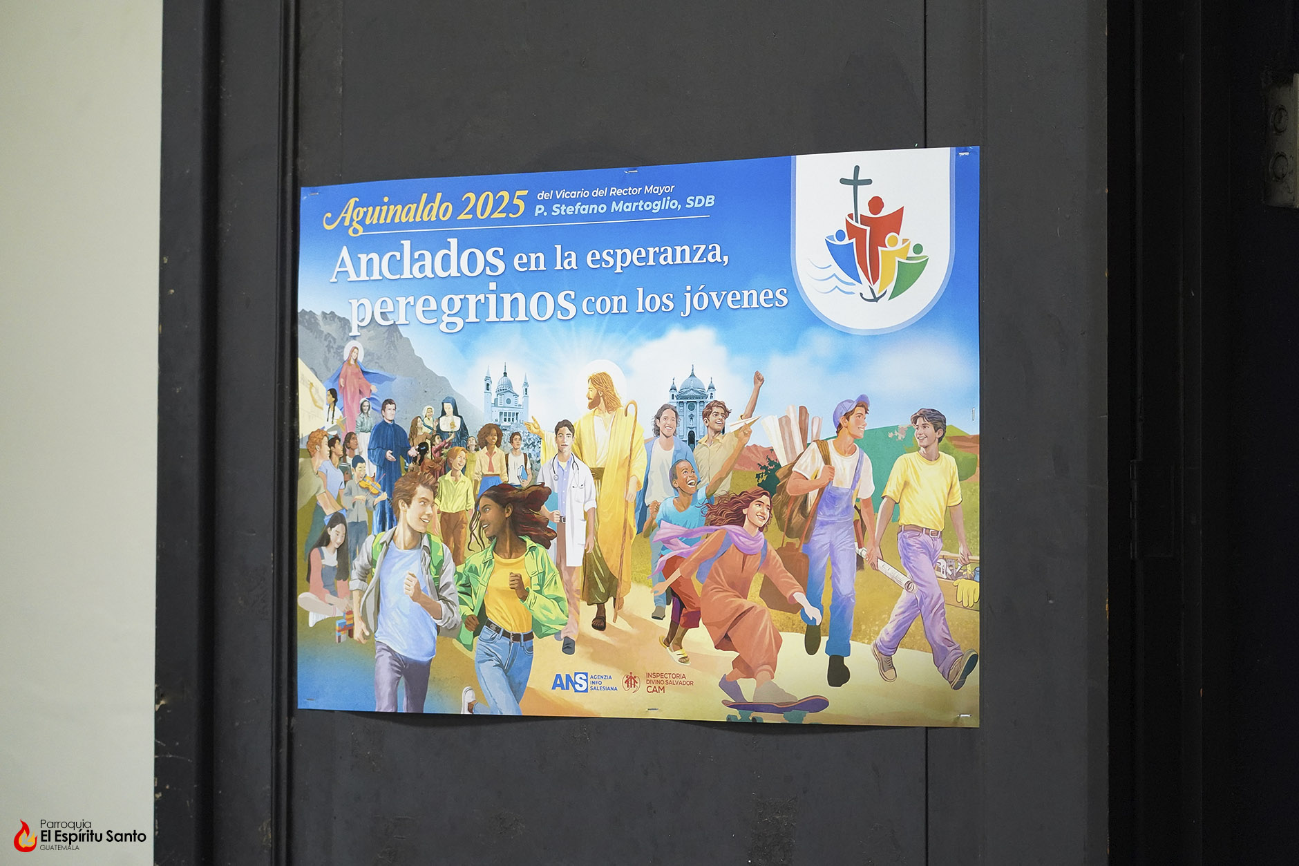 Desde el viernes, 31 de enero, se ha colocado en la entrada al templo parroquial, así como a los diferentes salones parroquiales, el póster oficial del Aguinaldo Salesiano 2025.