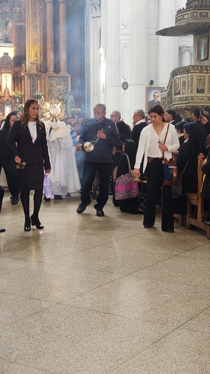 Posteriormente vivieron un momento de Adoración Eucarística ante Jesús Sacramentado para luego dar paso a una peregrinación, en compañía del Santísimo Sacramento, por las calles del Centro Histórico hasta llegar a Santa Iglesia Catedral Metropolitana, en donde participaron de la Eucaristía de Renovación de compromiso como Ministros.