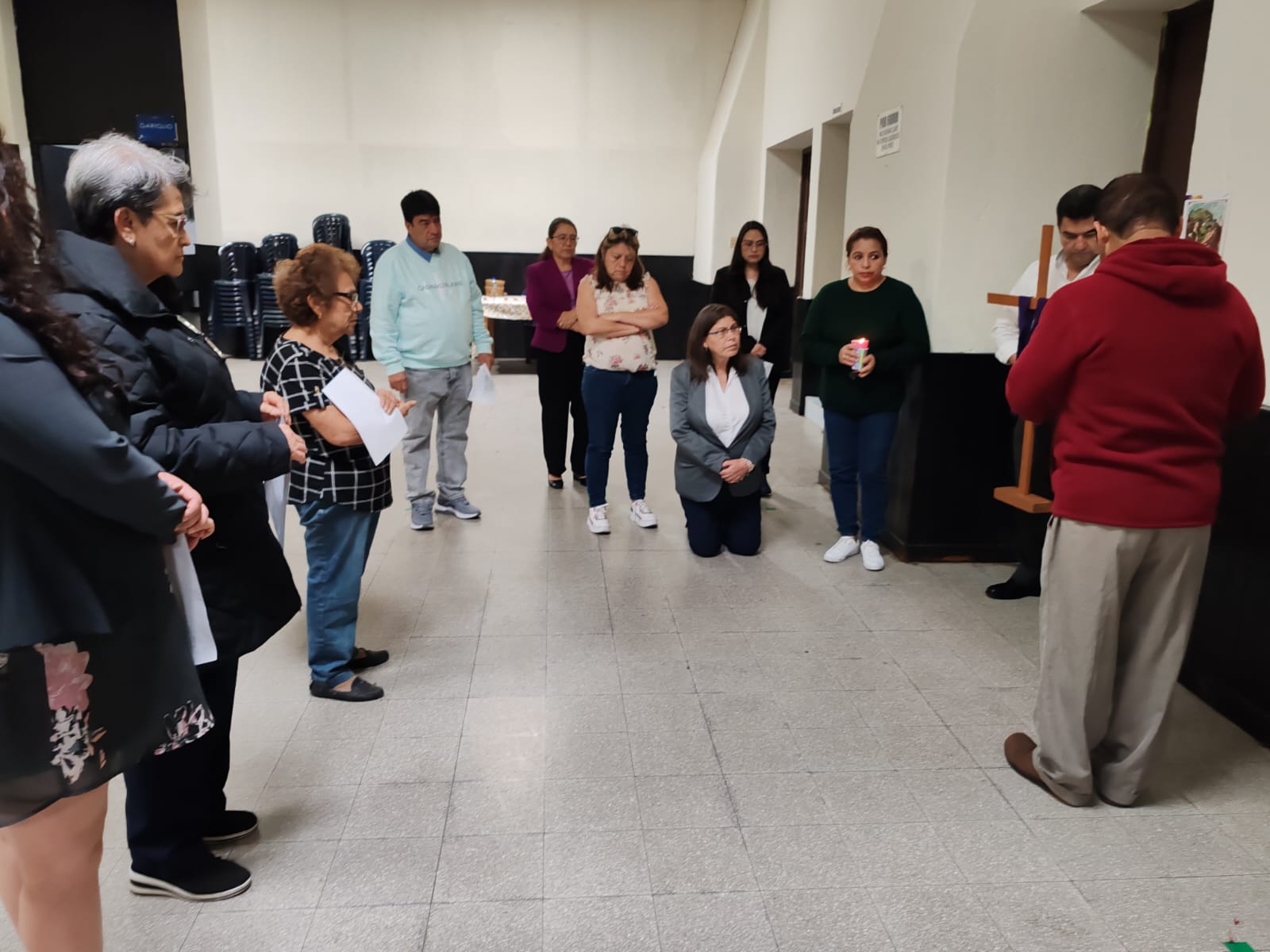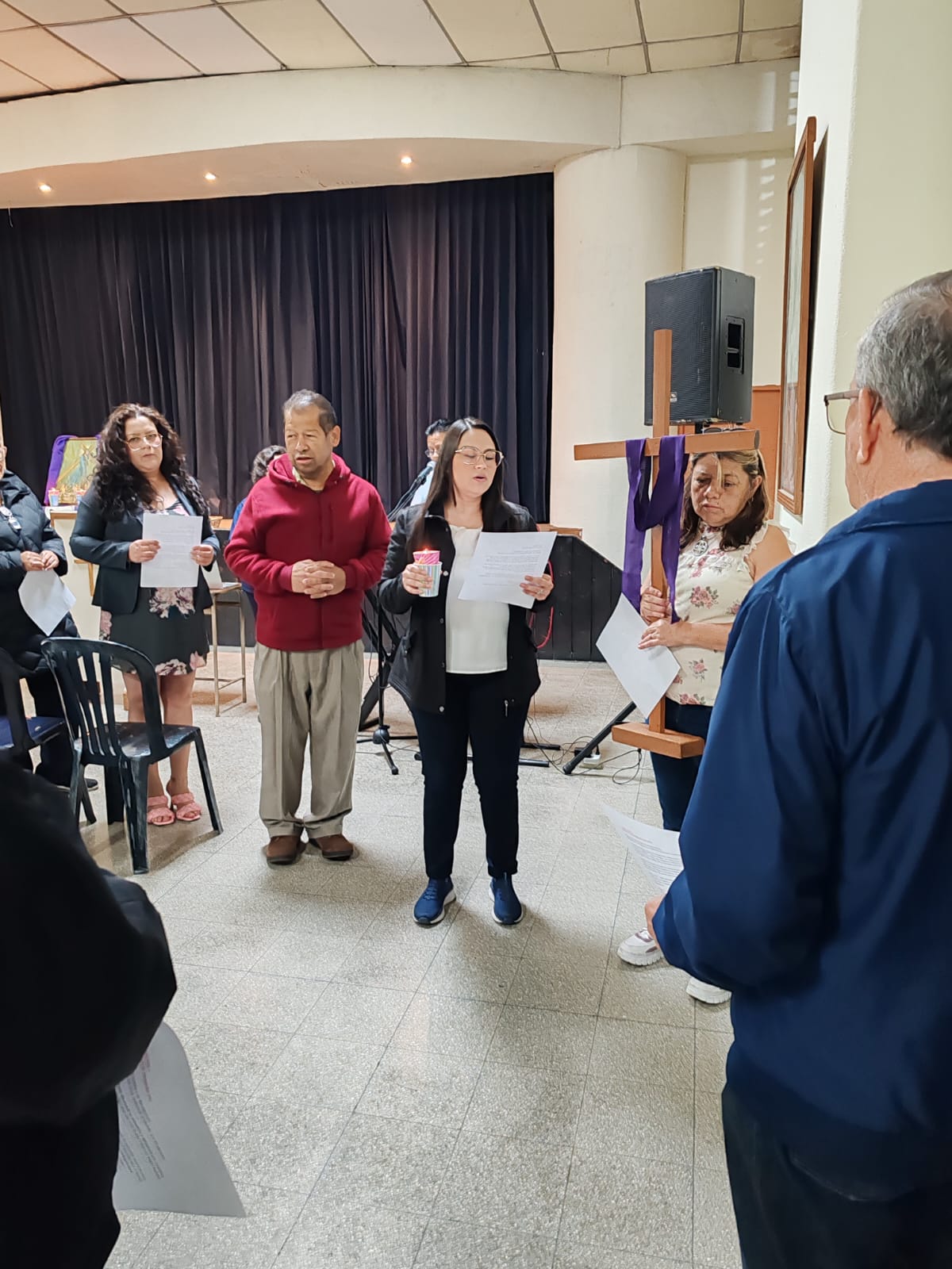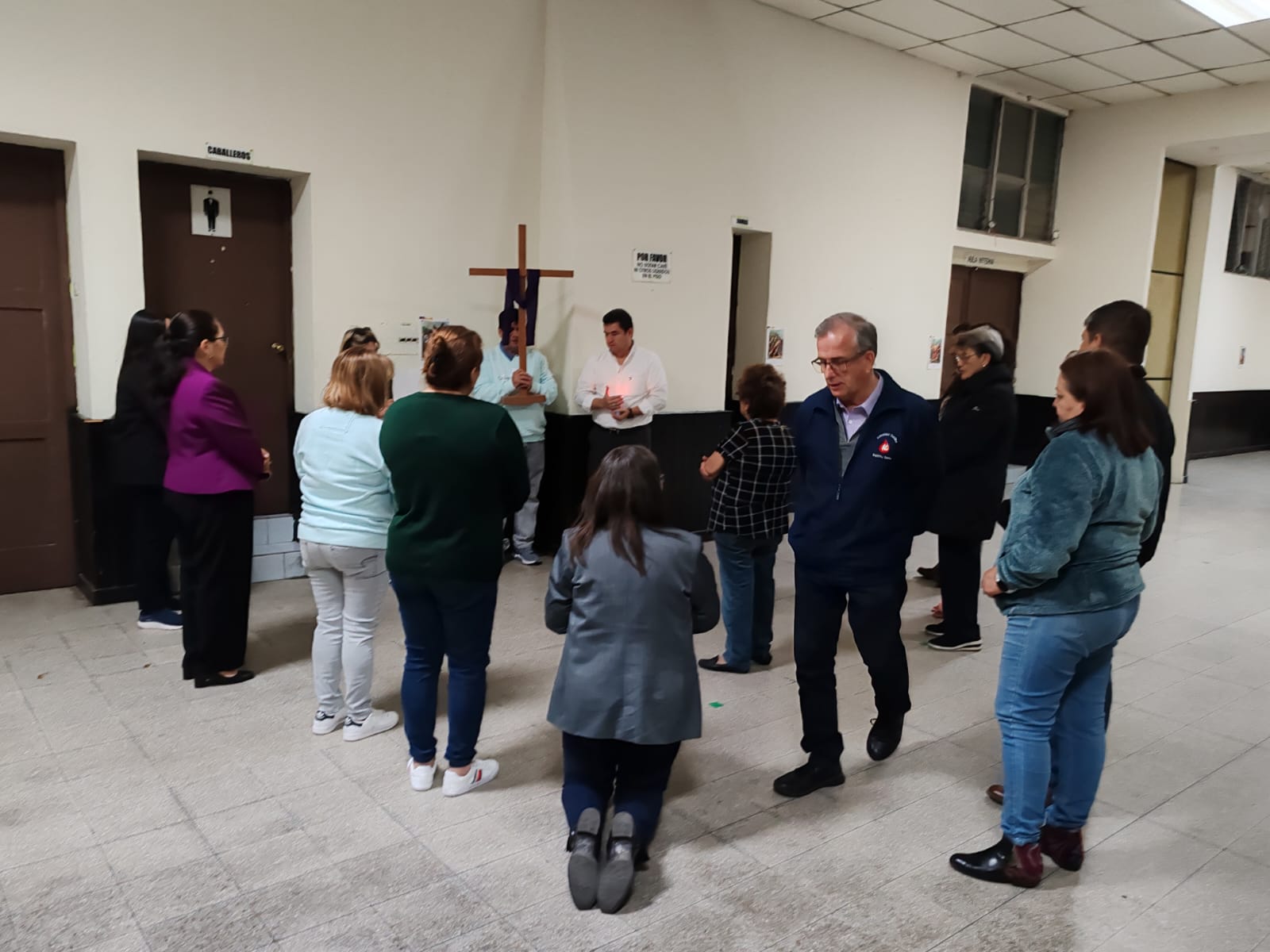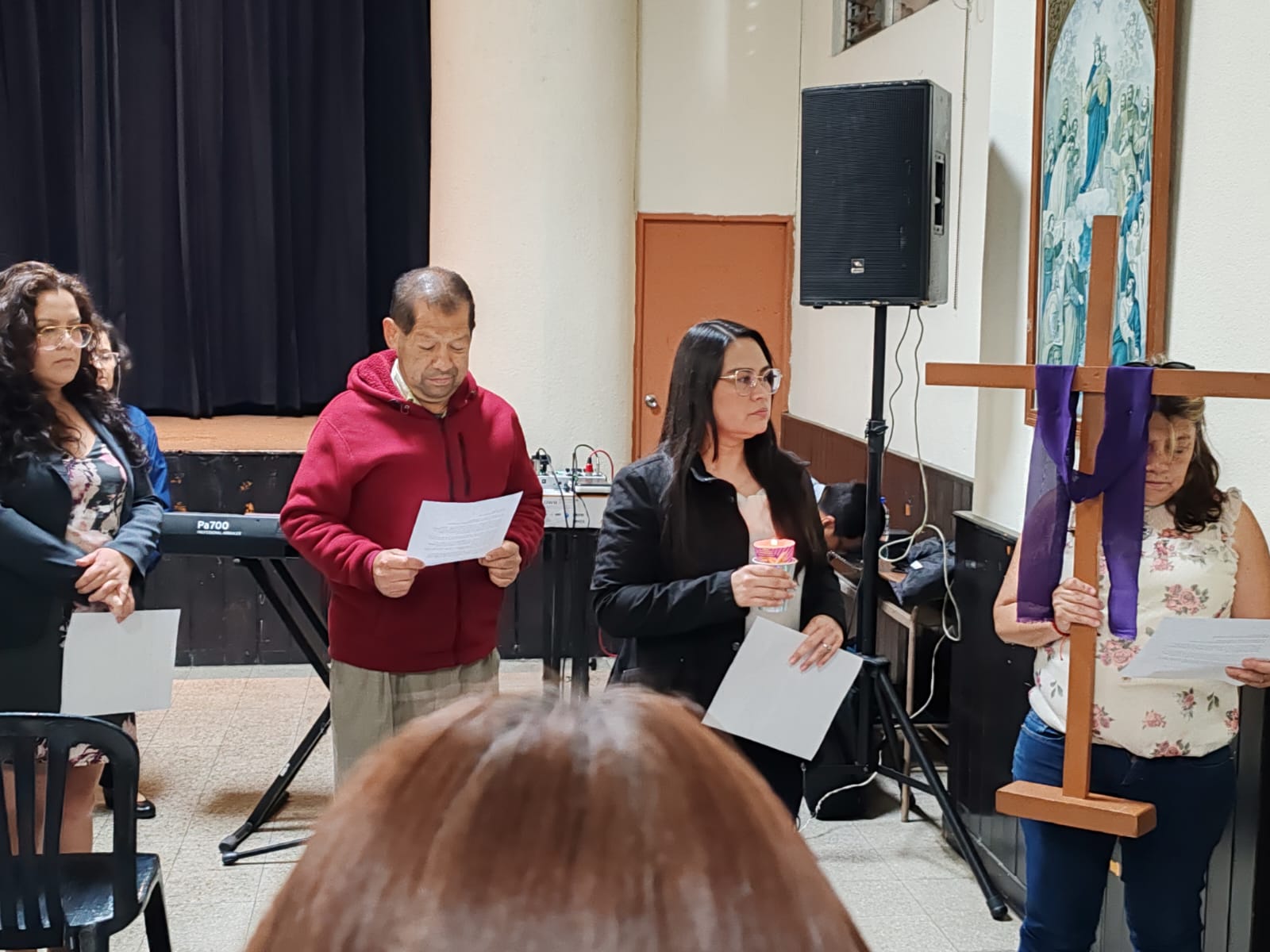 Dicha actividad, que inició a las 8:00 p.m., se realizó en el interior del Salón Don Bosco, en donde ubicaron las catorce estaciones para rezar, delante de cada una, la meditación y oraciones correspondientes portando consigo una cruz.