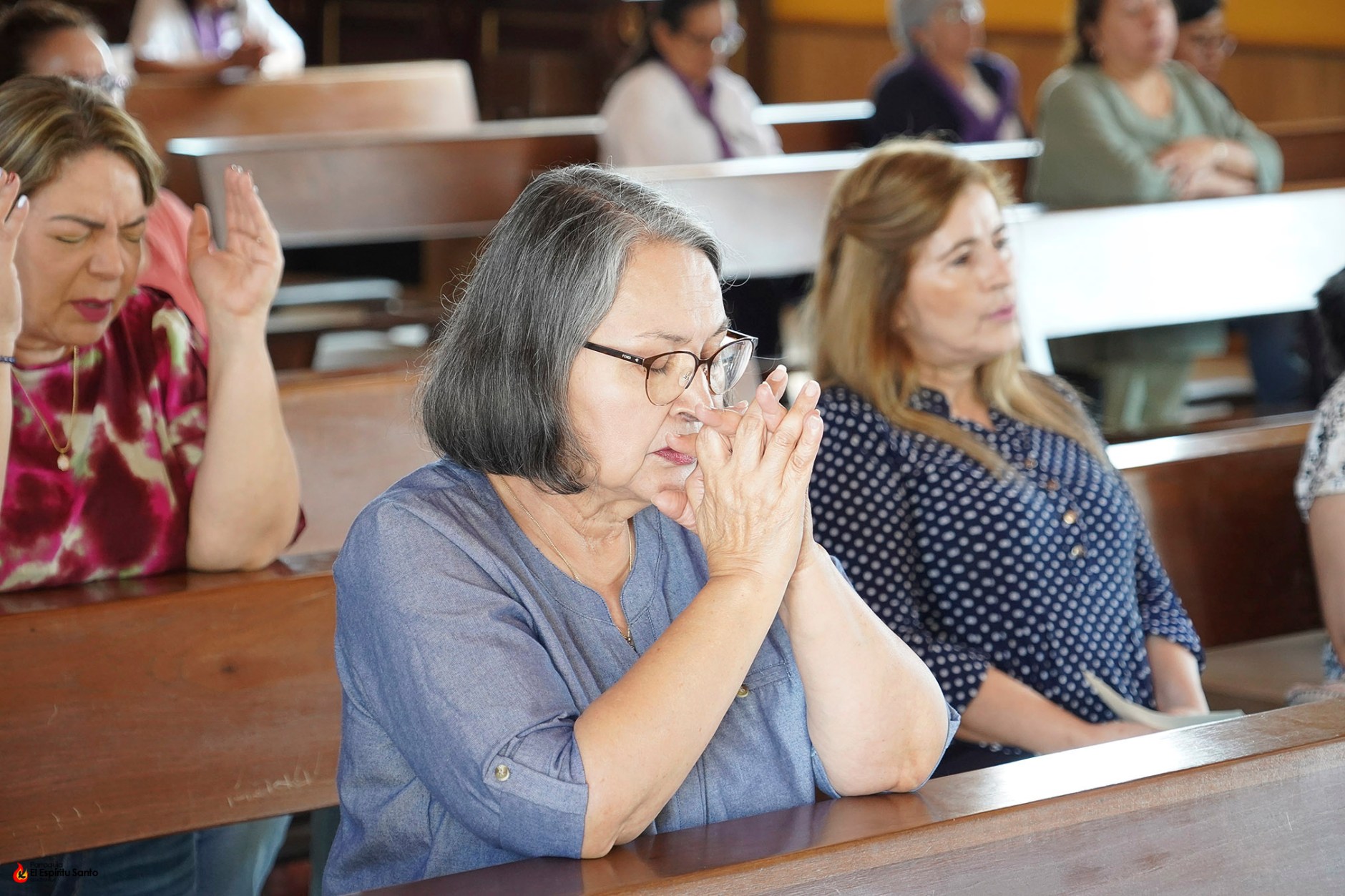 Durante esta actividad, varias servidoras de la comunidad guiaron momentos de oración, en los que pidieron al Señor por nuestro país, los sacerdotes, así como peticiones personales de las asistentes. Melsin Esteban estuvo a cargo de la alabanza en vivo, quien, con bellos cantos eucarísticos, propició un ambiente de oración y meditación en presencia de Jesús Vivo.