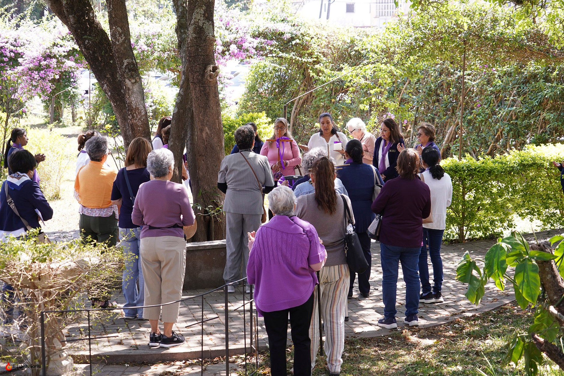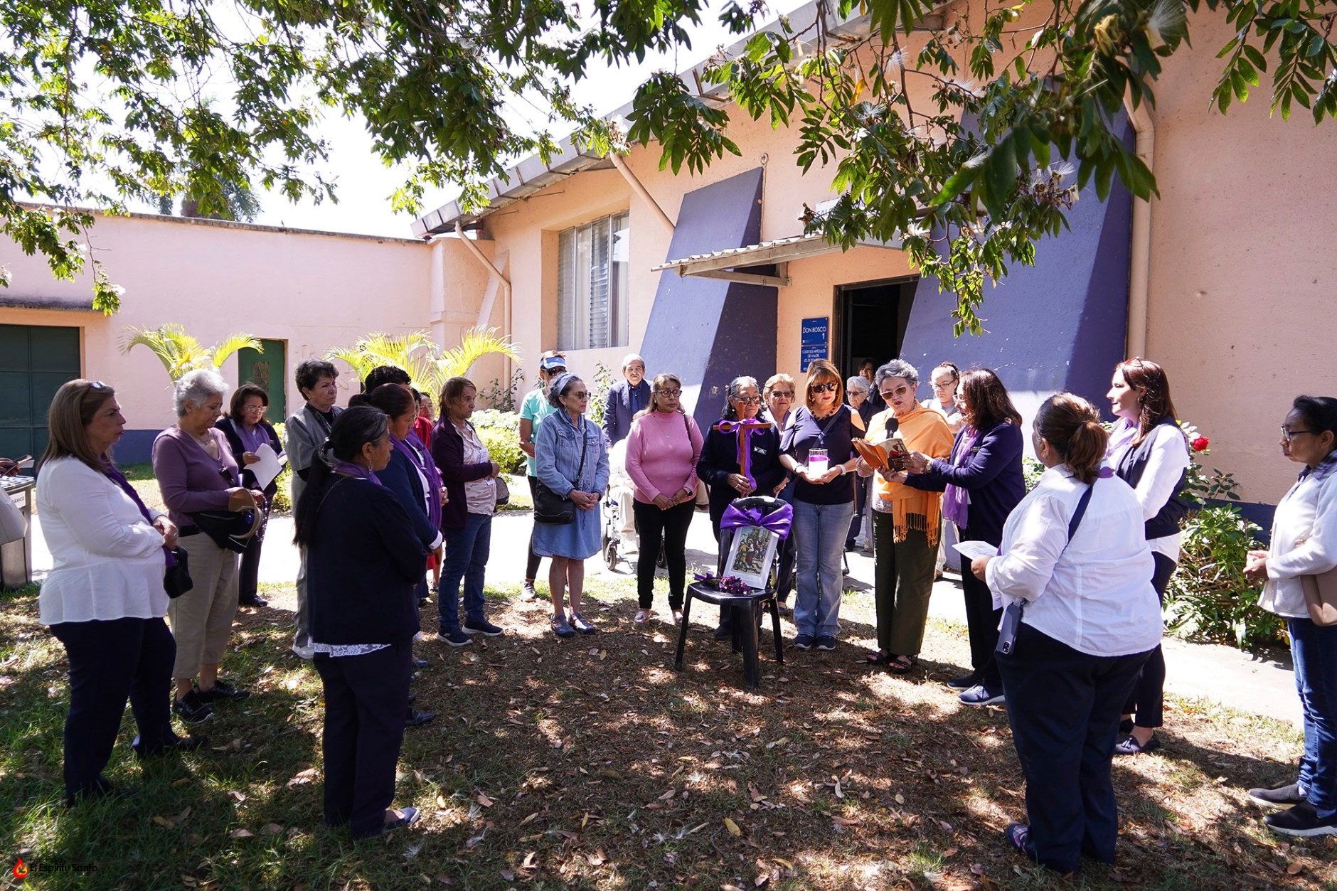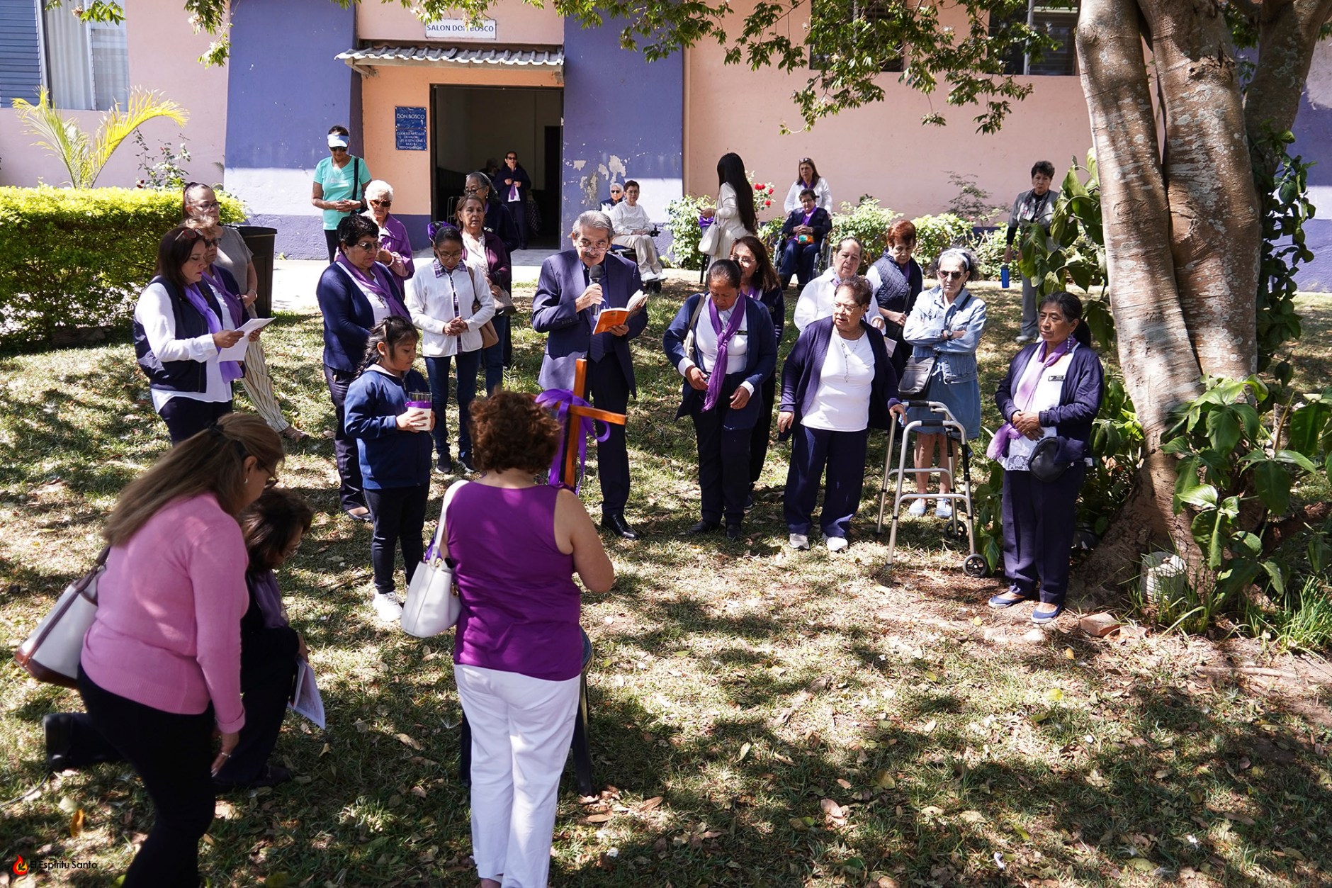 La actividad inició a las 10:00 a.m. con una breve introducción que se desarrolló en el Salón Don Bosco, para luego dar paso al ejercicio del Vía Crucis en el jardín Laudato Sí, durante el que fueron meditando cada una de las catorce estaciones.