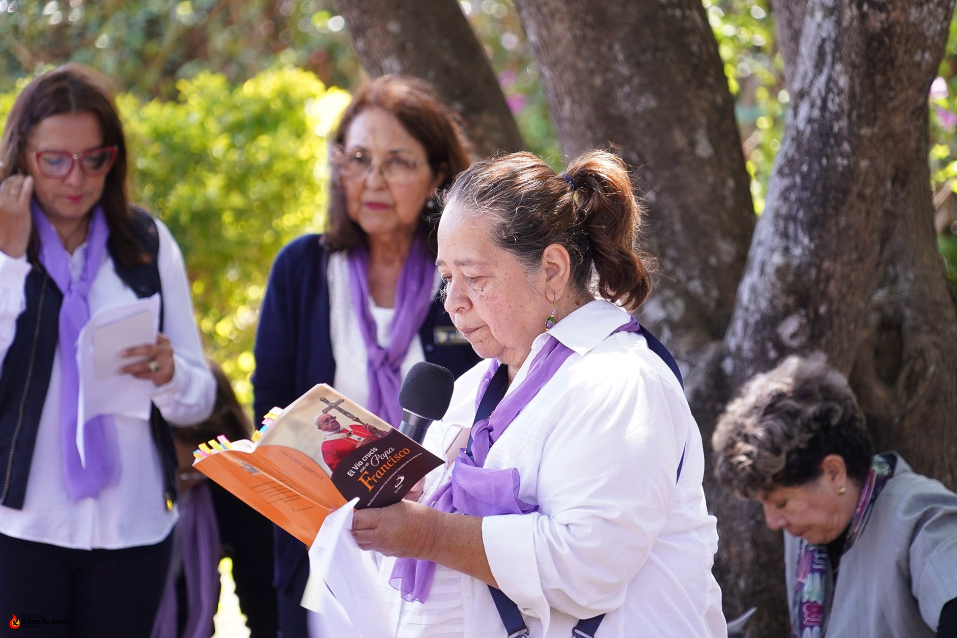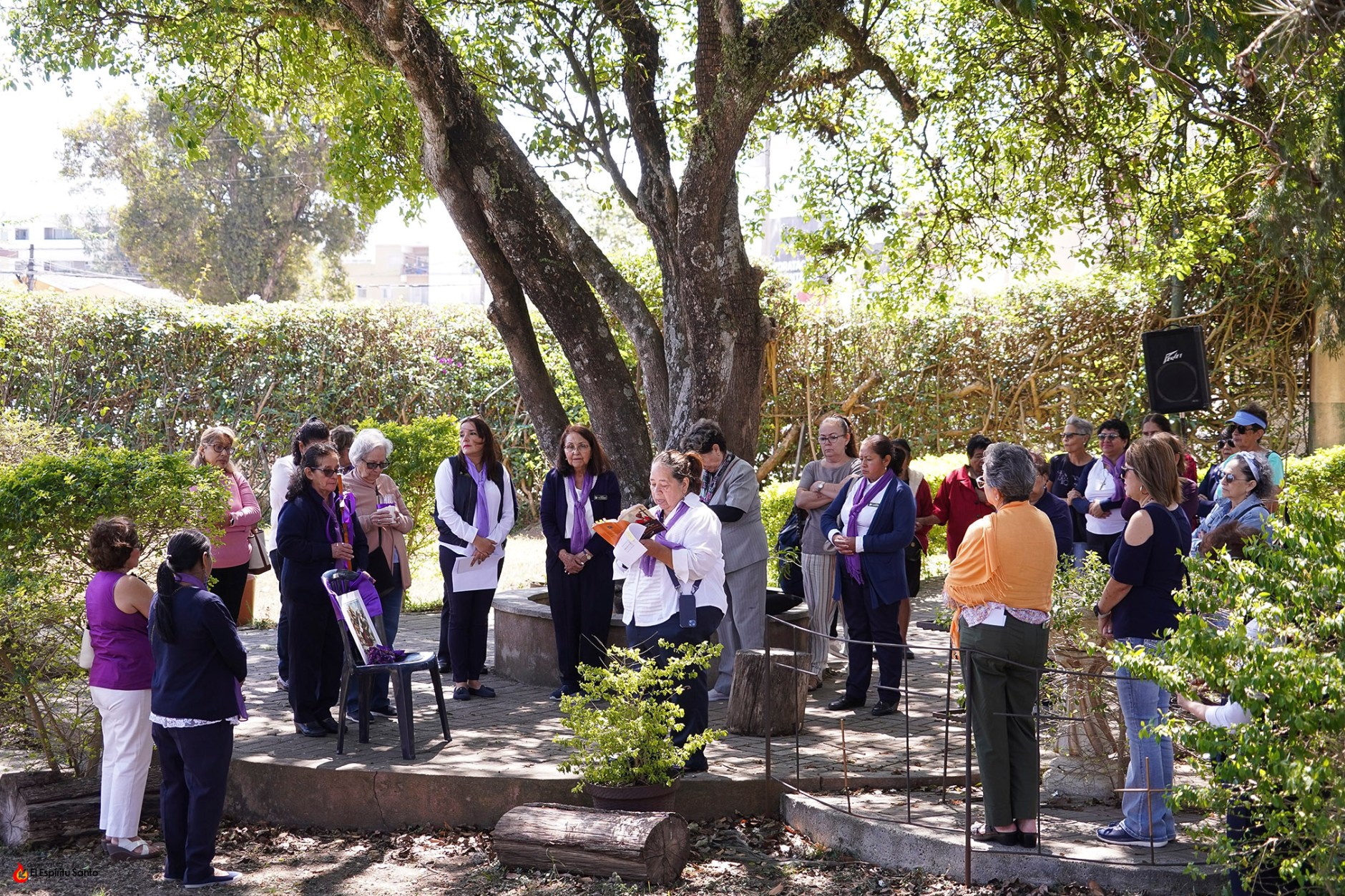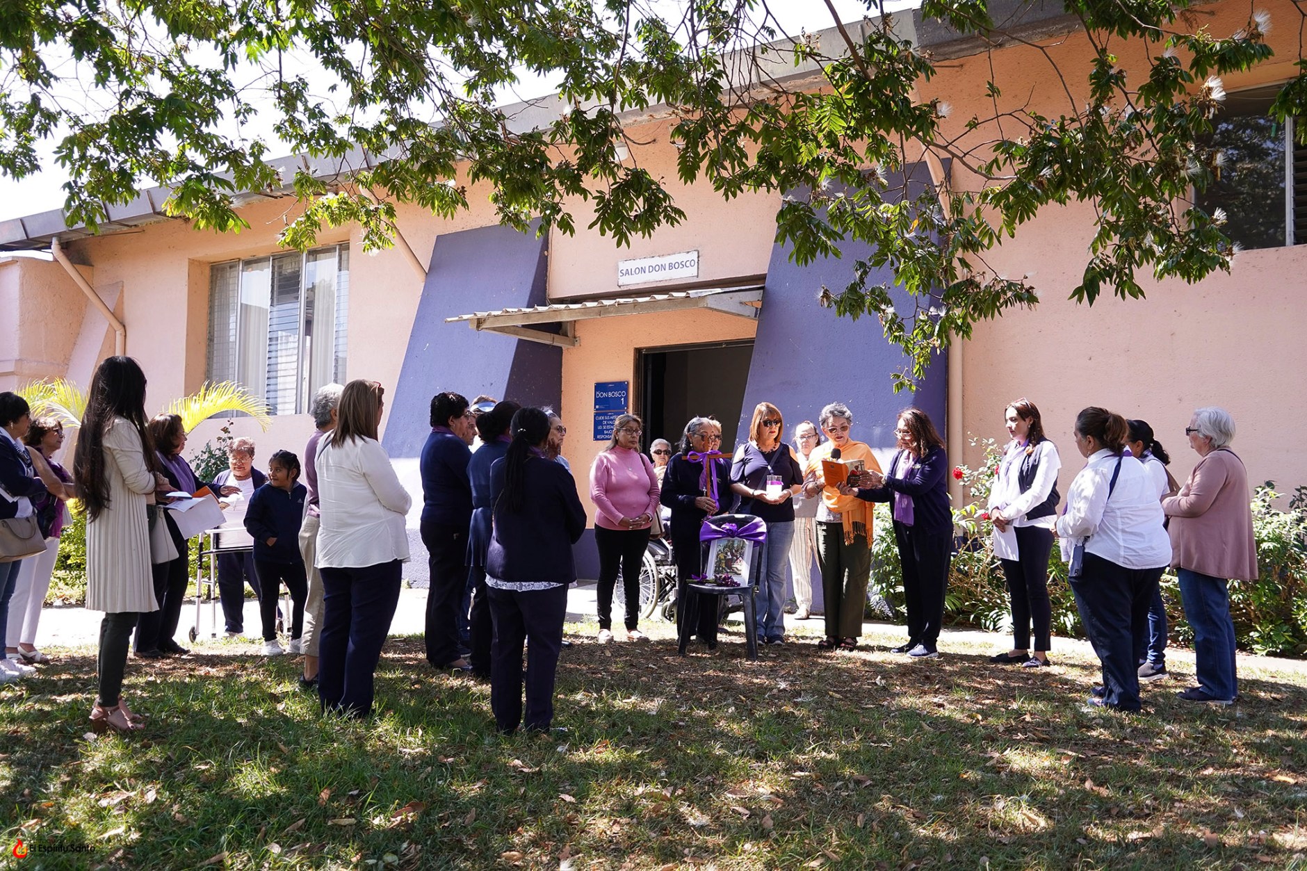 La actividad inició a las 10:00 a.m. con una breve introducción que se desarrolló en el Salón Don Bosco, para luego dar paso al ejercicio del Vía Crucis en el jardín Laudato Sí, durante el que fueron meditando cada una de las catorce estaciones.