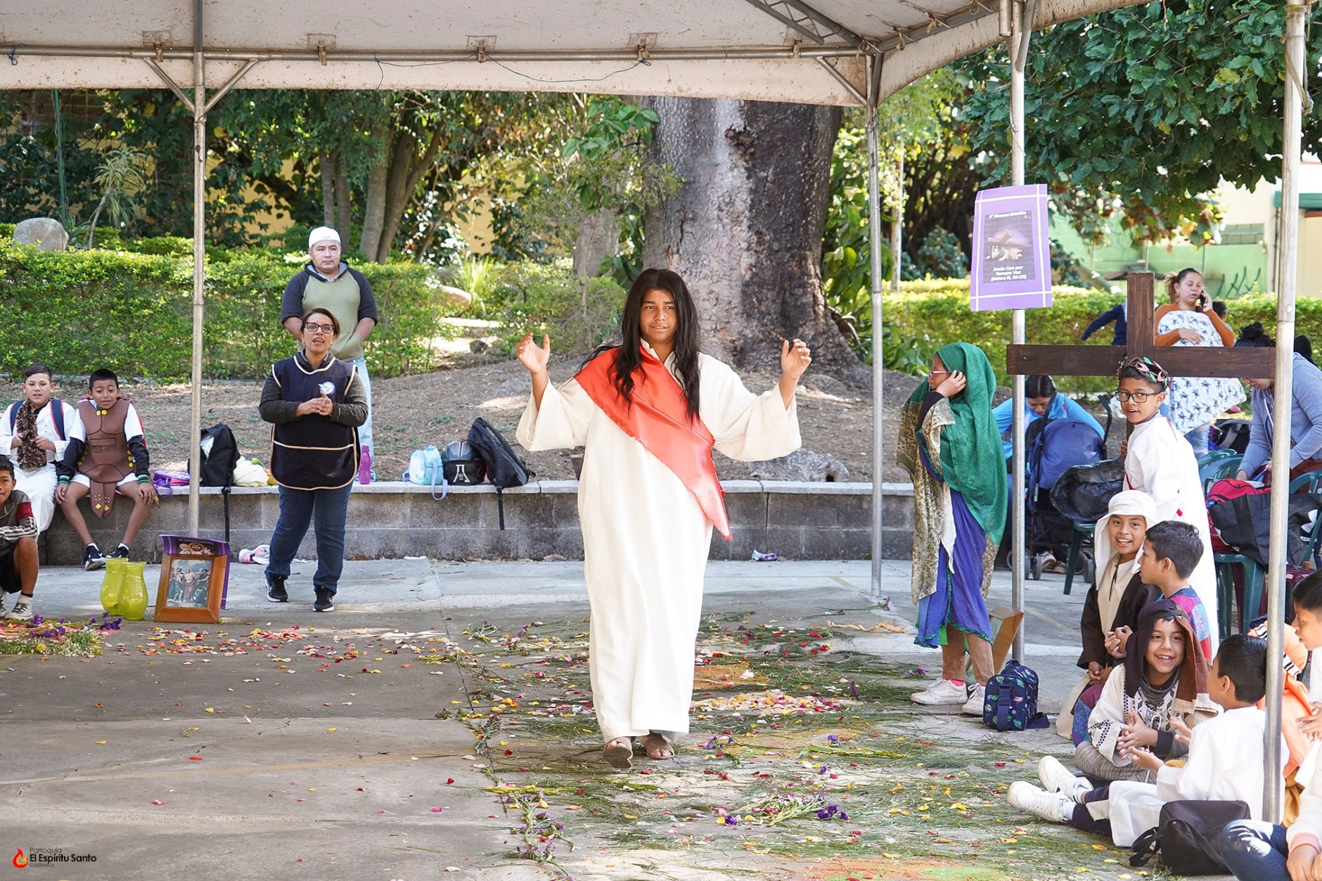 En esta ocasión, el Vía Crucis inició a las 8:00 a.m. y contó con la participación de todos los alumnos del centro escolar. Las primeras siete estaciones estuvieron a cargo de los más pequeños, los alumnos de kínder a segundo primaria, mientras que las siguientes estaciones fueron caracterizadas por los alumnos desde tercero a sexto primaria.