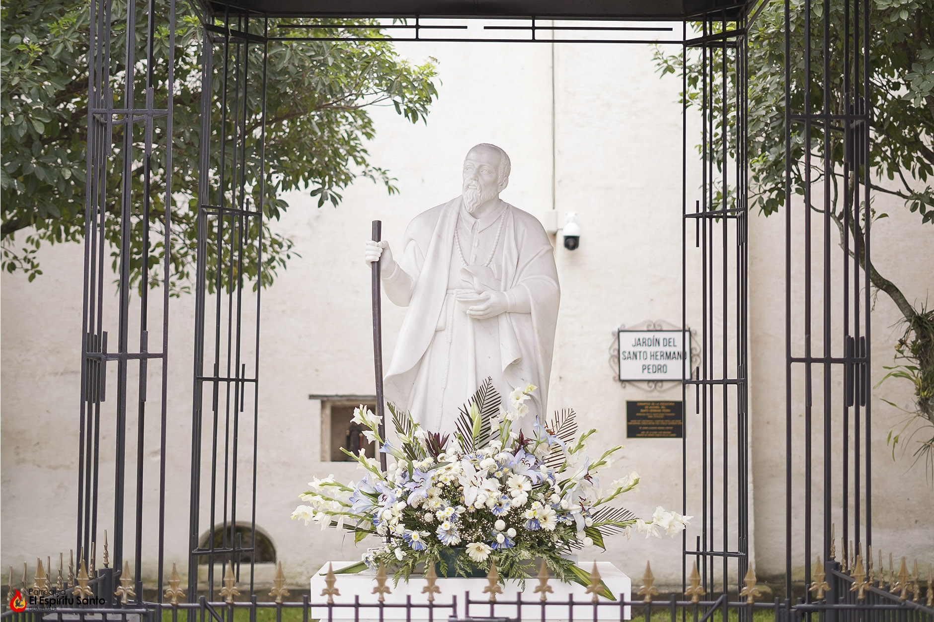 El Belén lo hacía con sus propias manos y en él ponía los mejores dones de la tierra: naranjas, granadillas, toronjas. No menos que la fruta, entre el lujo odorante de la hoja de pacaya se llena el alma de Pedro de suaves olores. Desde el ocho de enero de 1655 le acompaña el Niño Jesús y hay gentes que juran sobre los Evangelios haberlo visto albergado en el sombrero de Pedro, que nunca se ponía.