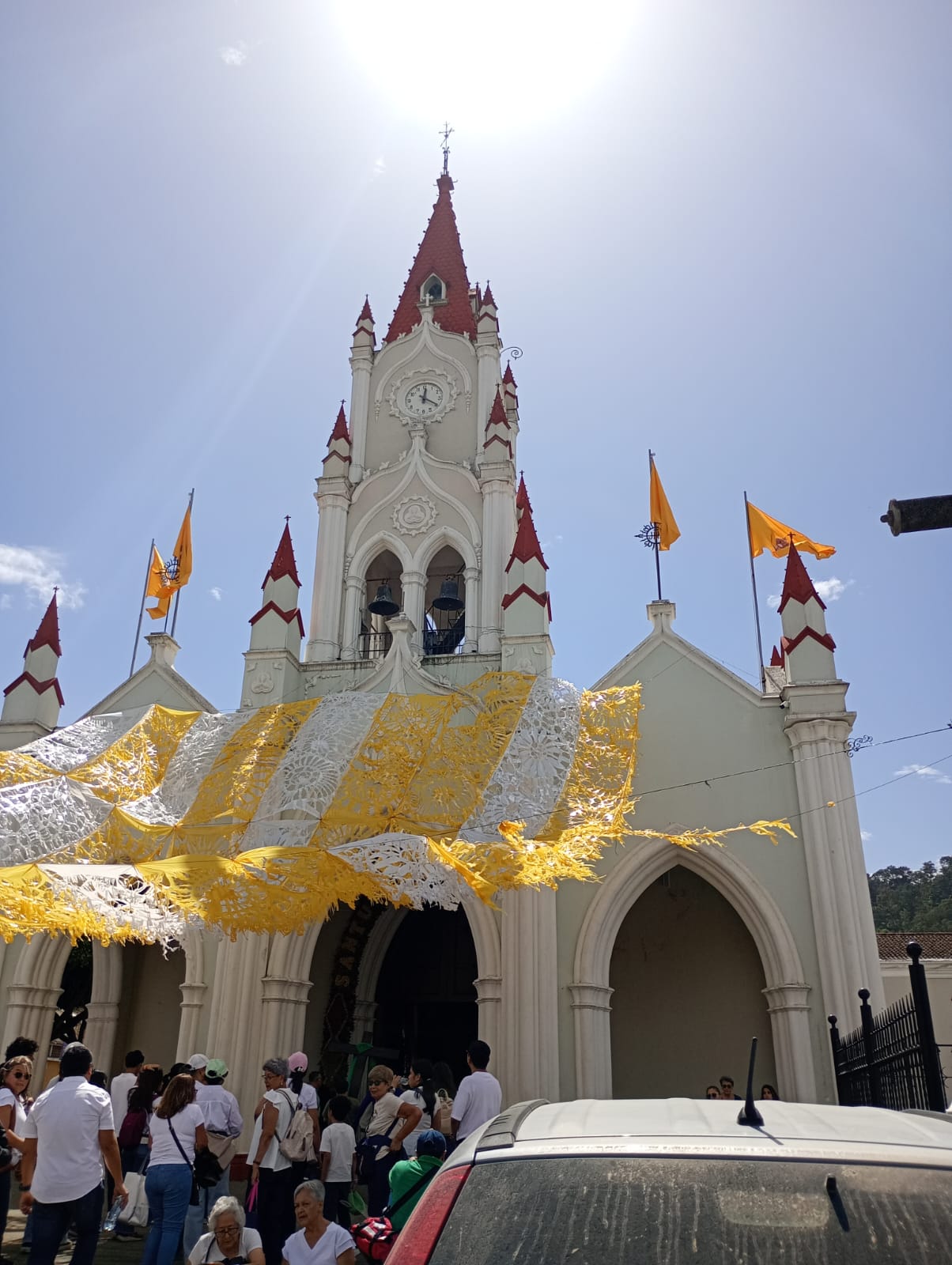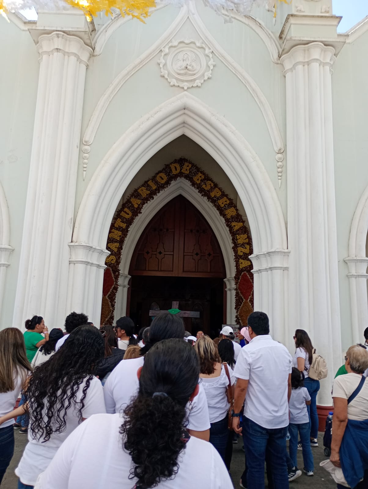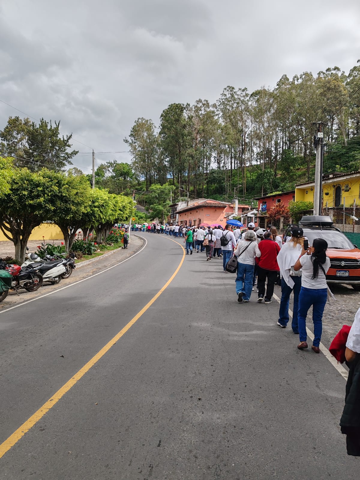 Desde tempranas horas, siete buses repletos de peregrinos partieron desde nuestra parroquia, iniciando el recorrido a las 7:30 a.m. Alrededor de las 9:00 a.m., los feligreses arribaron a la ciudad colonial, donde emprendieron una caminata festiva hacia el santuario, encabezada por una cruz de madera y animada con cantos de alabanza.