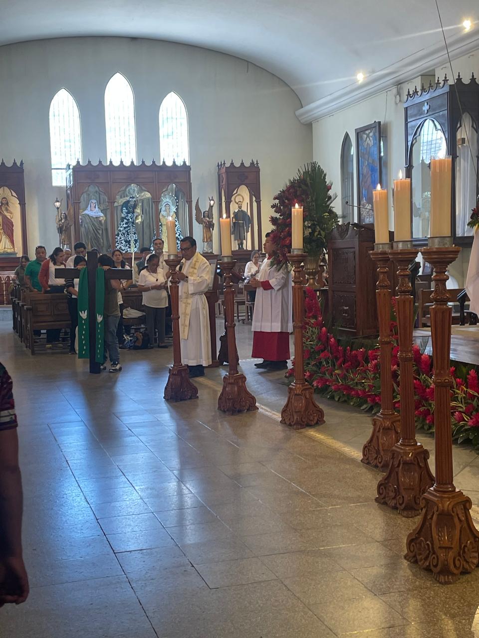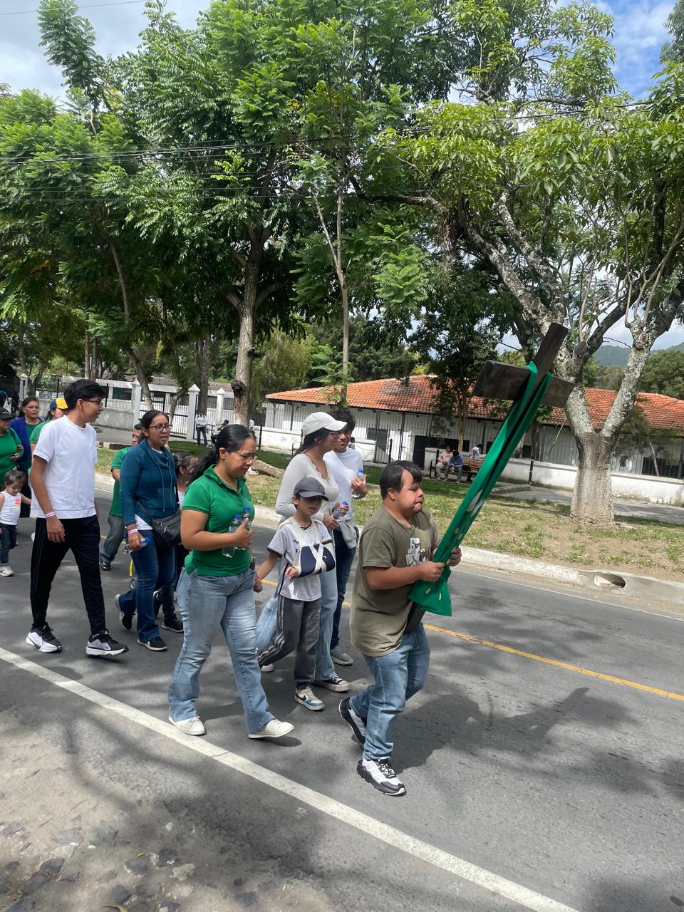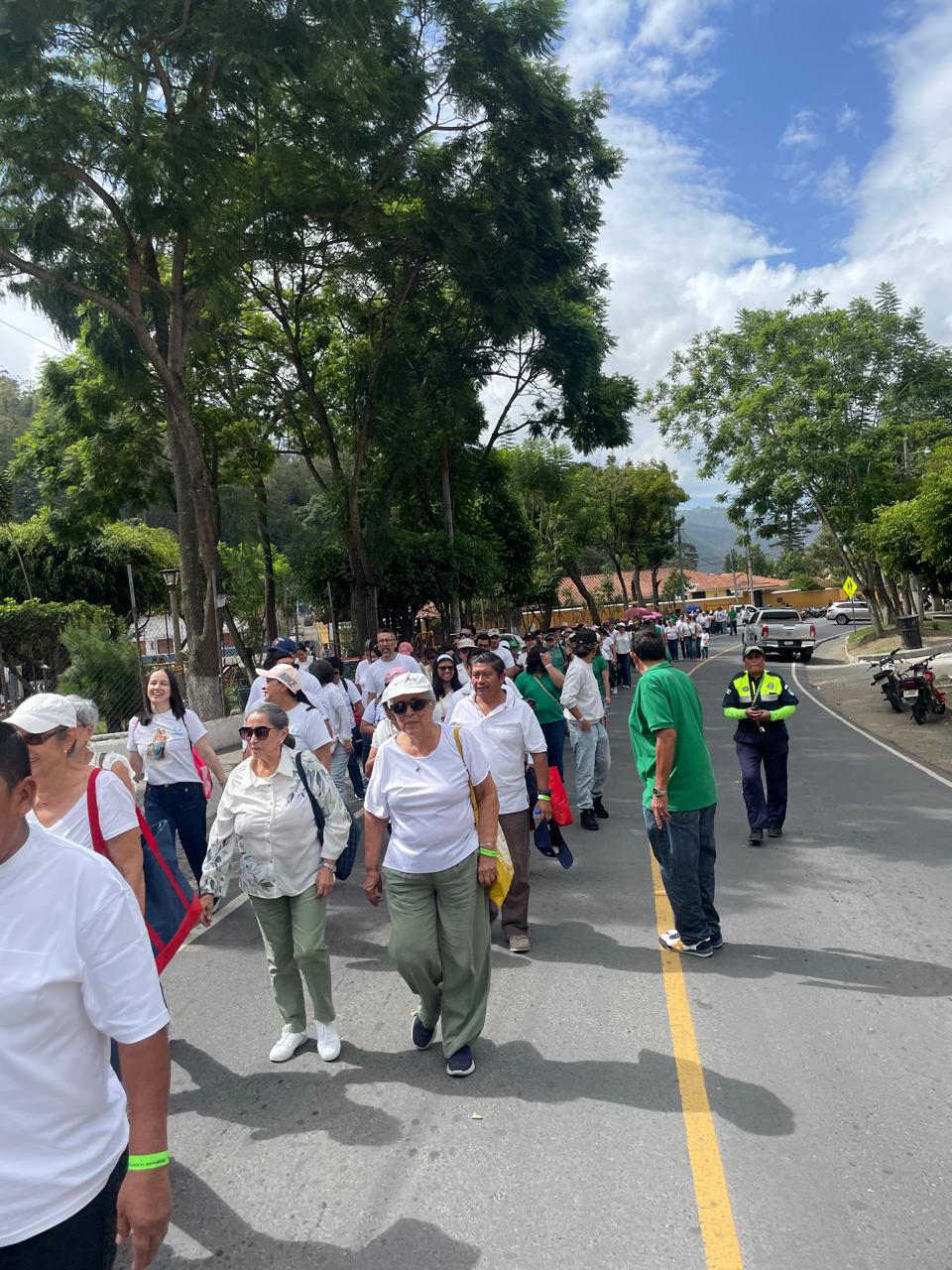 Desde tempranas horas, siete buses repletos de peregrinos partieron desde nuestra parroquia, iniciando el recorrido a las 7:30 a.m. Alrededor de las 9:00 a.m., los feligreses arribaron a la ciudad colonial, donde emprendieron una caminata festiva hacia el santuario, encabezada por una cruz de madera y animada con cantos de alabanza.