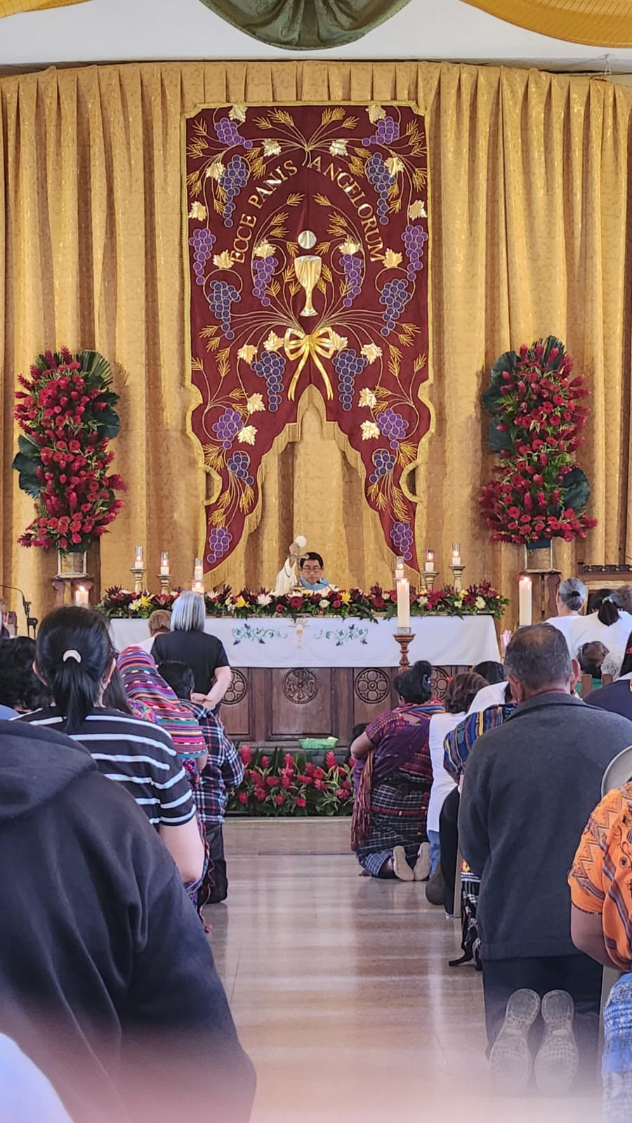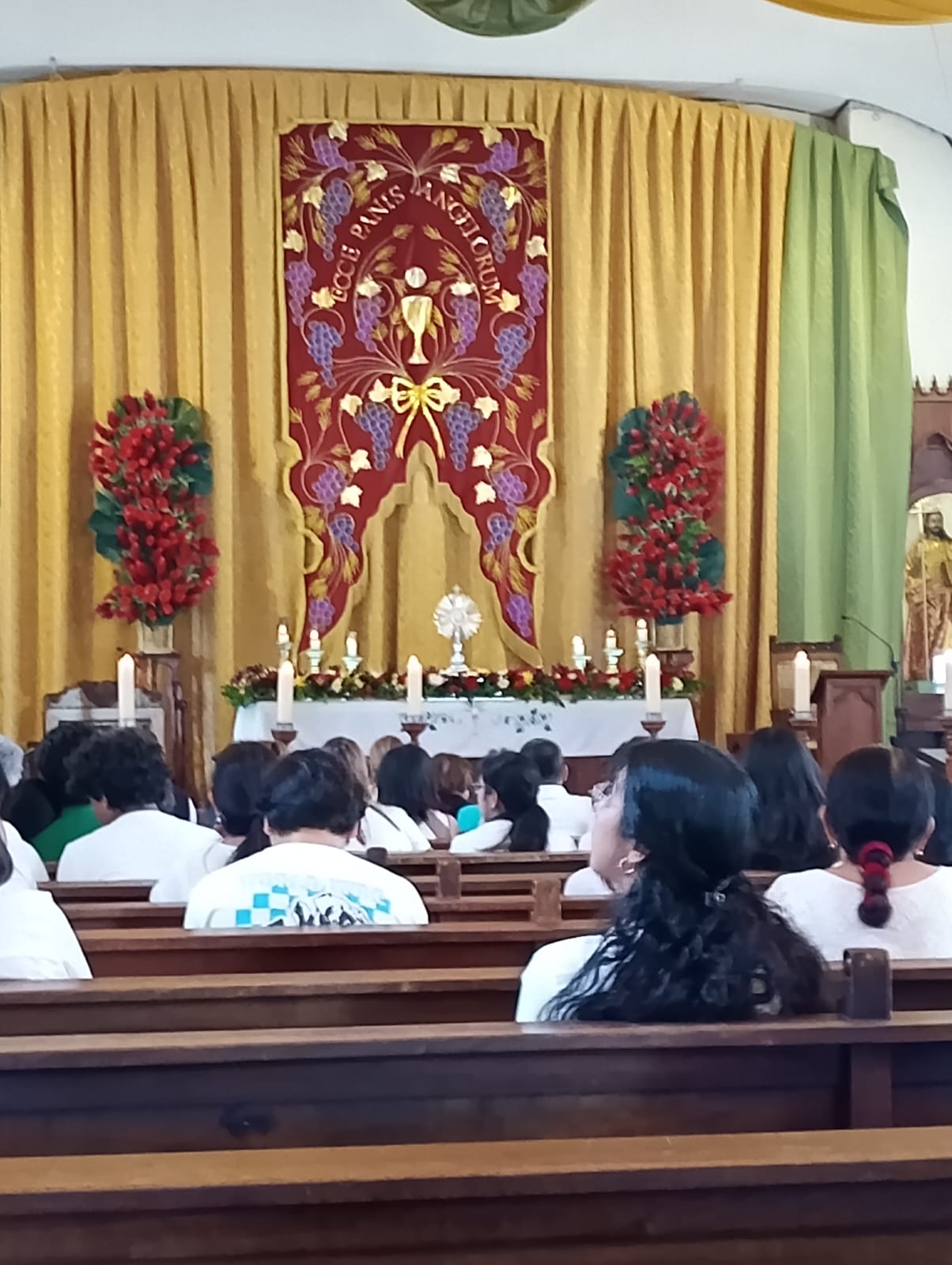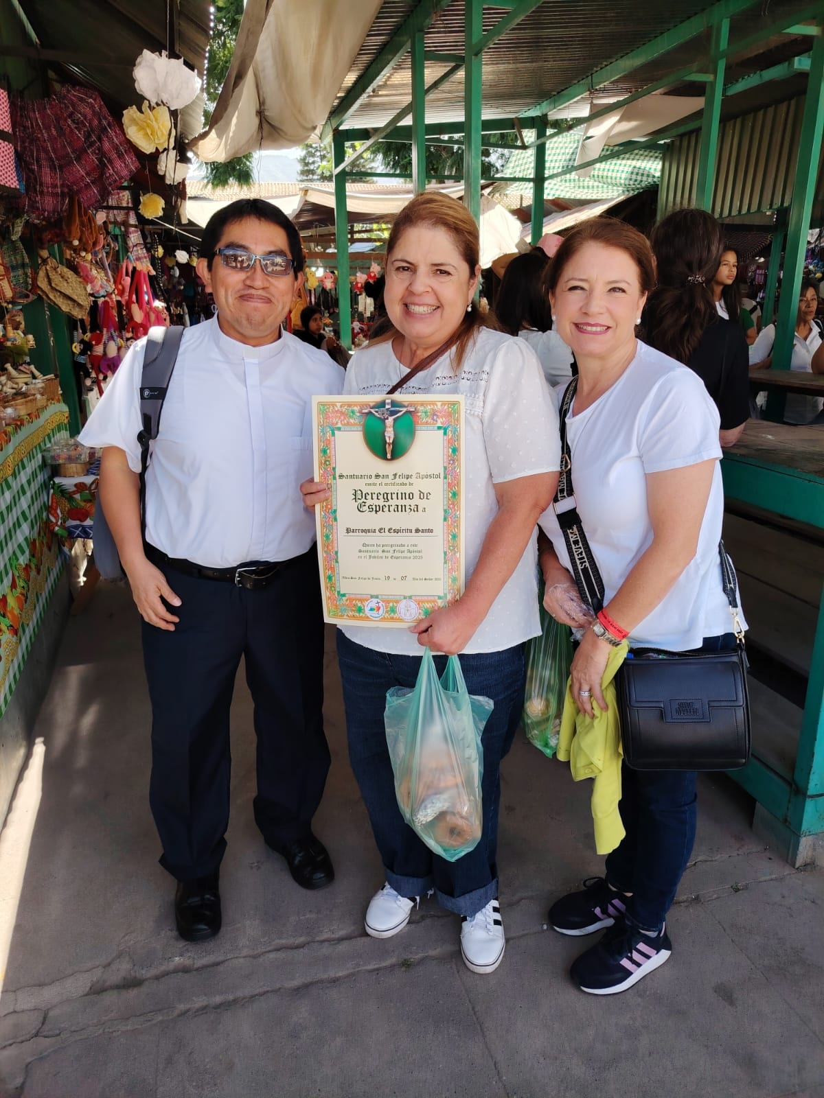 A su llegada, los peregrinos fueron recibidos con cálidas palabras por parte de las autoridades del Santuario San Felipe, quienes además impartieron su bendición a todos los asistentes. La jornada continuó con una hora de Adoración Eucarística, seguida de la celebración de la Santa Misa presidida por el padre Carlos Macz, SDB, párroco de nuestra comunidad.