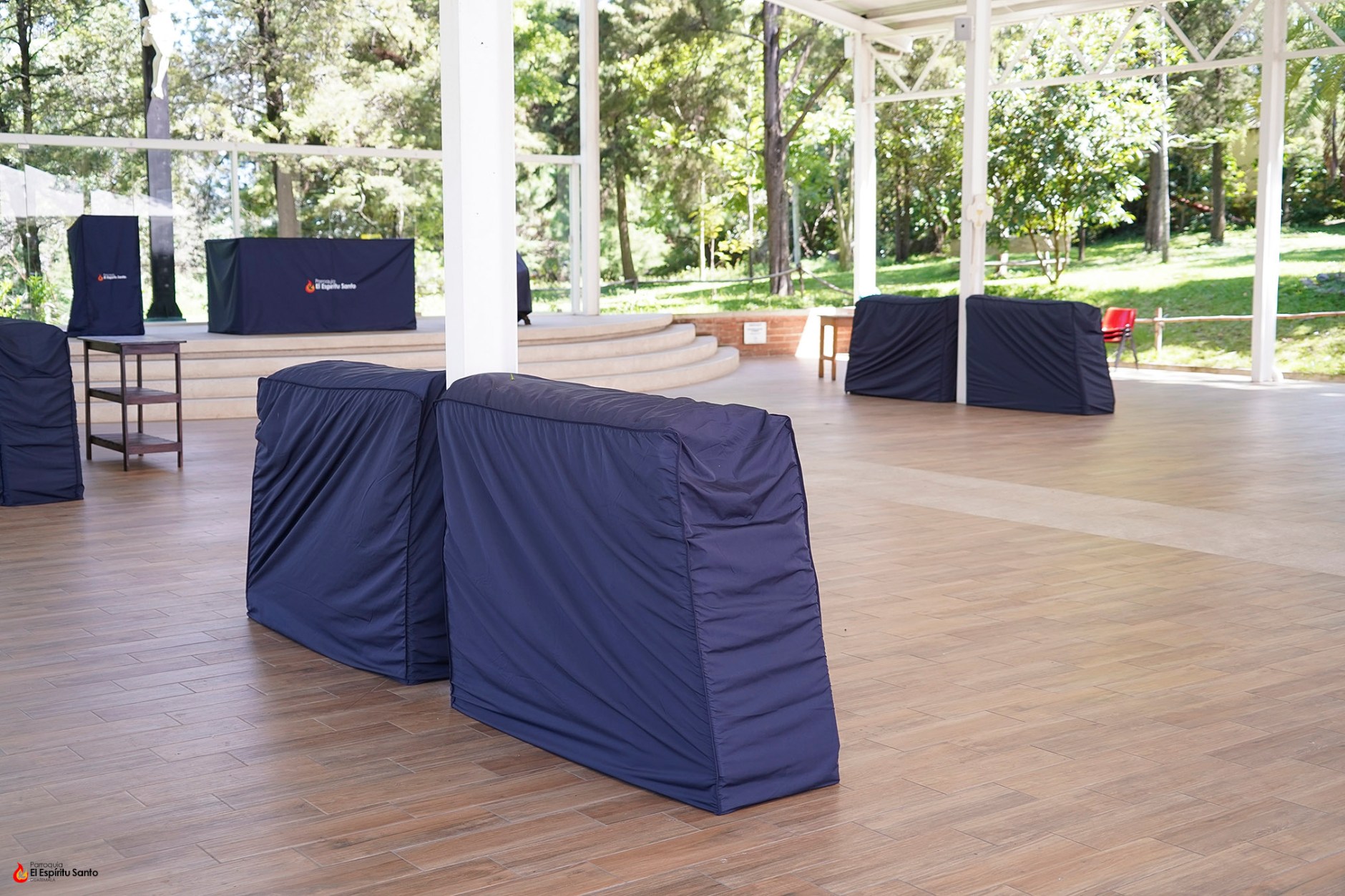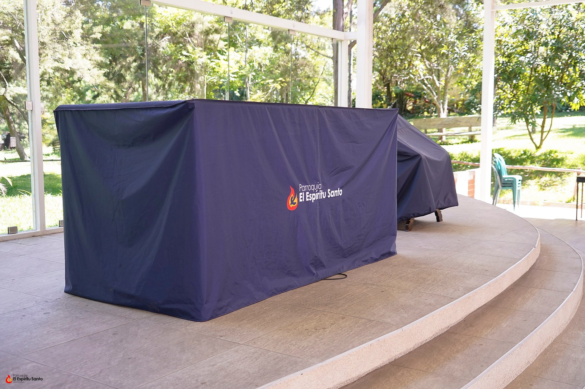 A partir de esta semana, el altar, el ambón y las sillas ubicadas en el Templete del Salón Campestre de nuestra parroquia cuentan con nuevas fundas impermeables que les brindan protección contra el clima y el polvo, garantizando así su conservación y buen estado para cada celebración litúrgica.
