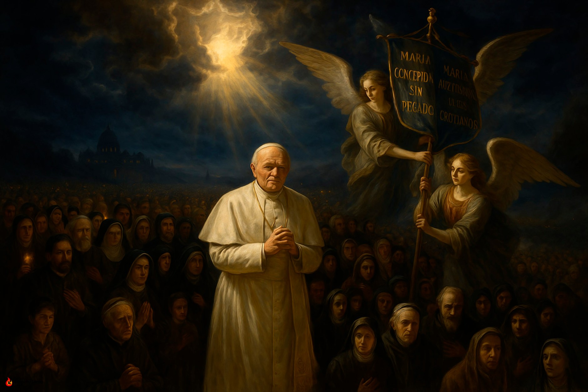 El Pontífice tomó en sus manos el estandarte y al ver que eran pocos los que lo seguían sintió tristeza, pero una voz le dijo: