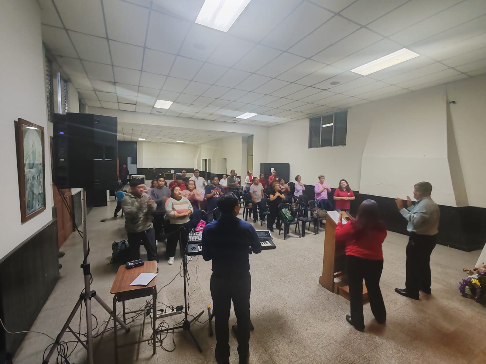 La noche comenzó con un profundo momento de alabanza, animado por Melsin Esteban, quien preparó el ambiente para propiciar un espacio de encuentro con el Señor a través de la oración y la reflexión.