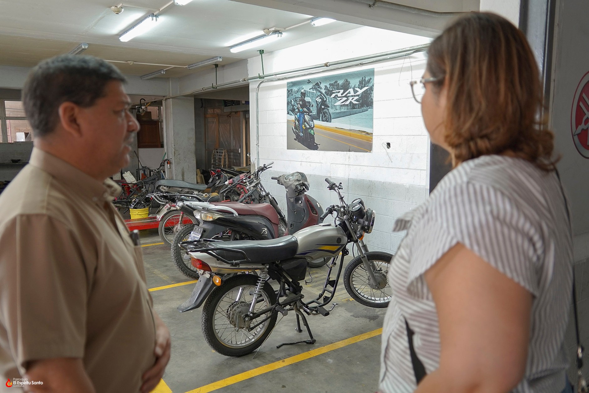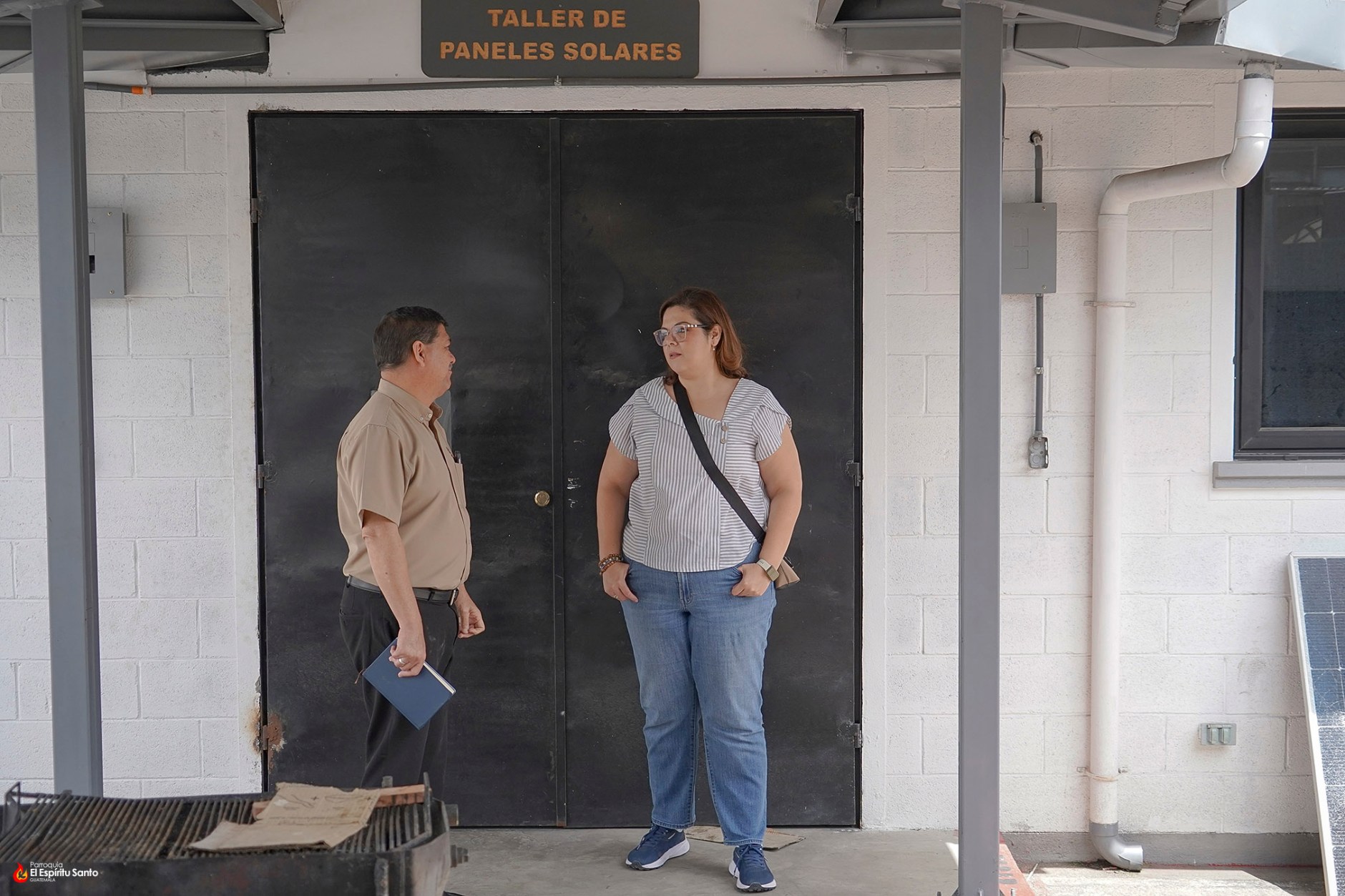 Posteriormente, se trasladó a la zona 8 de la capital, donde tuvo la oportunidad de recorrer el Centro de Formación Padre Bartolomé Ambrosio, SDB. Acompañada por Omar García, director del centro, pudo visitar los diferentes talleres en los que los jóvenes aprenden oficios como electricidad, carpintería, soldadura, mecánica de motocicletas y, más recientemente, la fabricación e instalación de paneles solares. También conoció algunos de los trabajos realizados por los alumnos, quienes además tienen acceso a formación en inglés, música y otras áreas complementarias.
