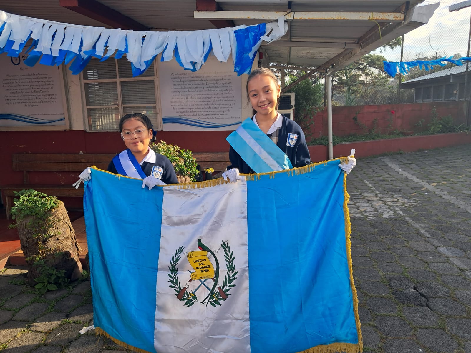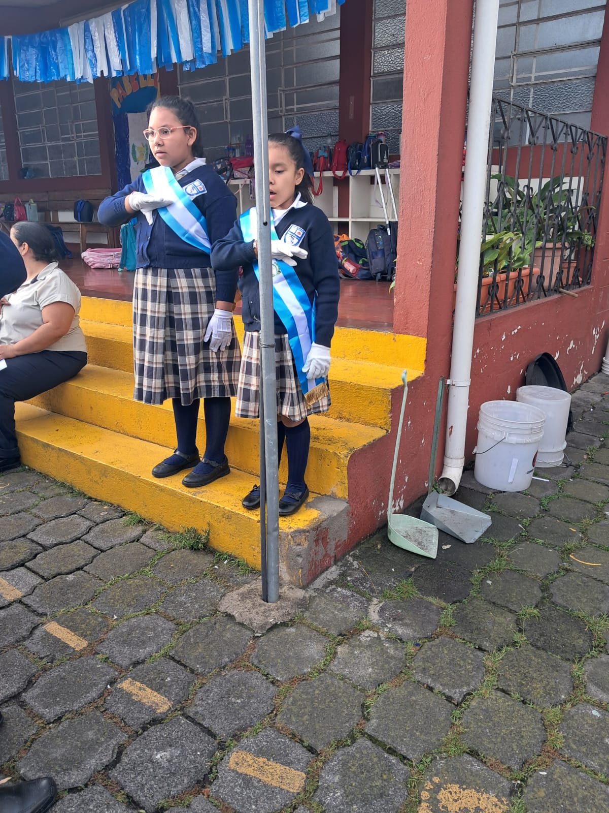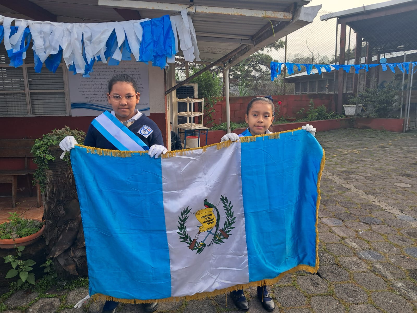 La jornada comenzó con la izada del pabellón nacional, un honor que recayó en los alumnos destacados de sexto primaria. Posteriormente, todos los presentes entonaron con entusiasmo el Himno Nacional de Guatemala, llenando el ambiente de orgullo y respeto hacia los símbolos patrios.