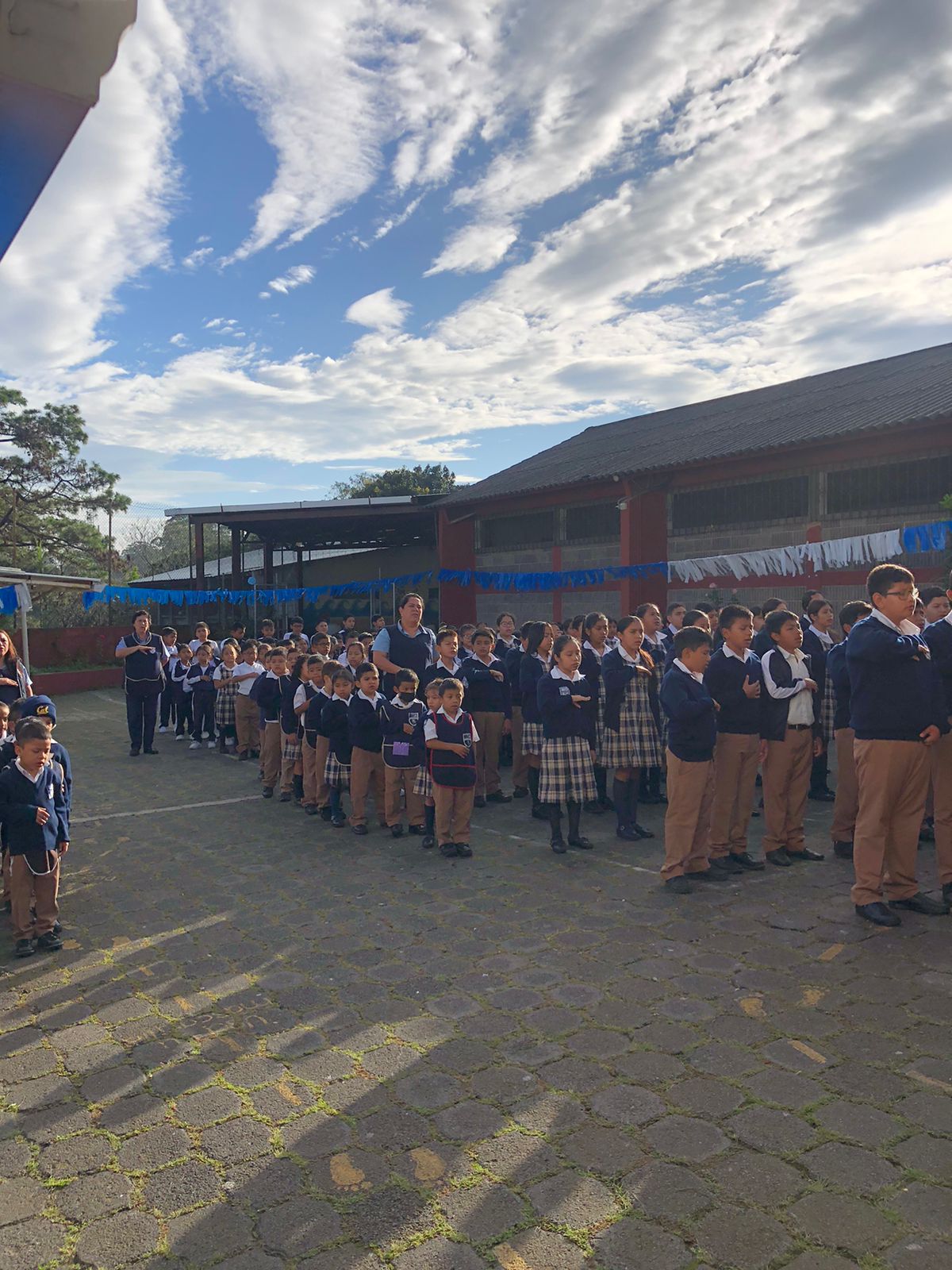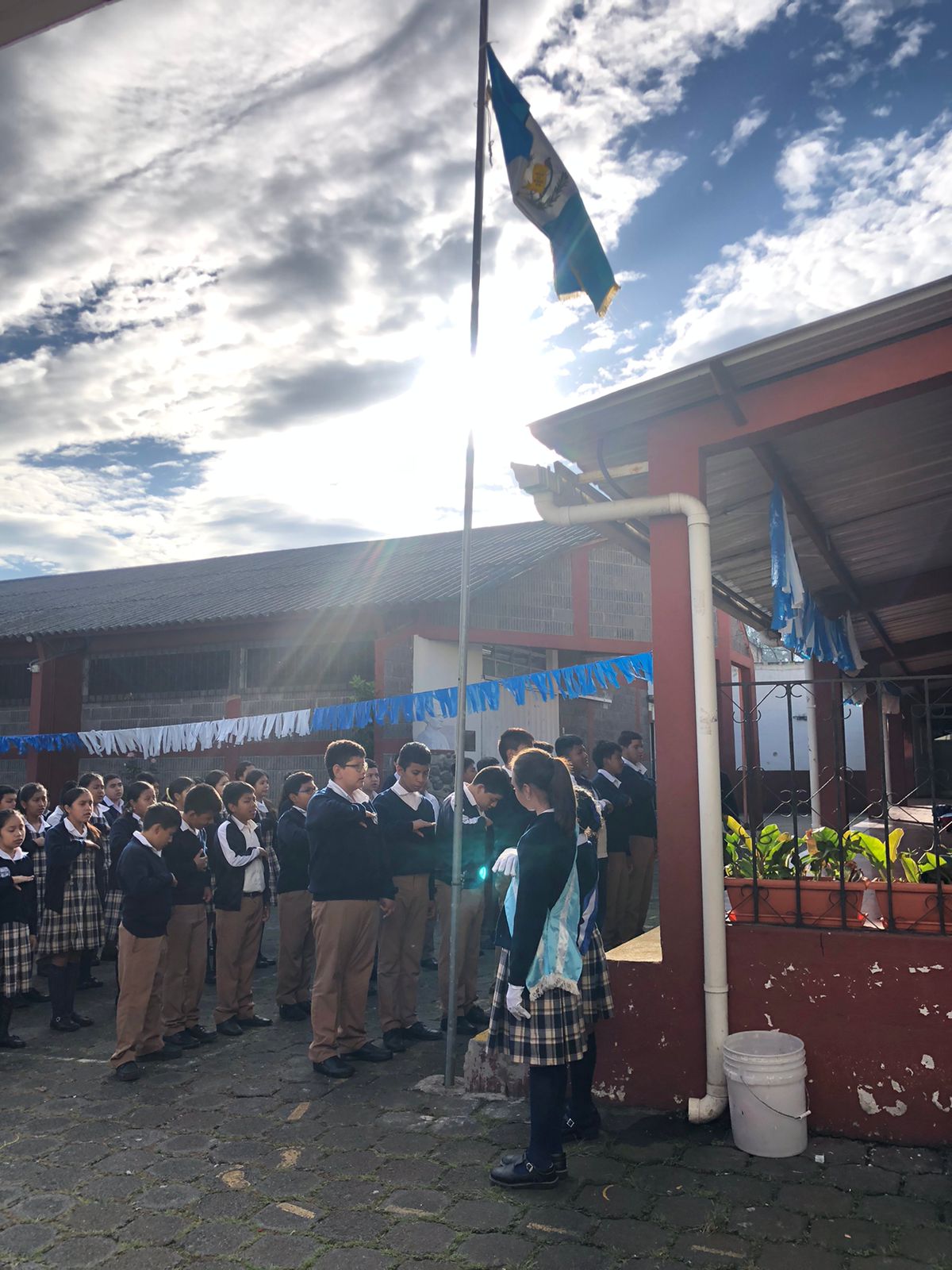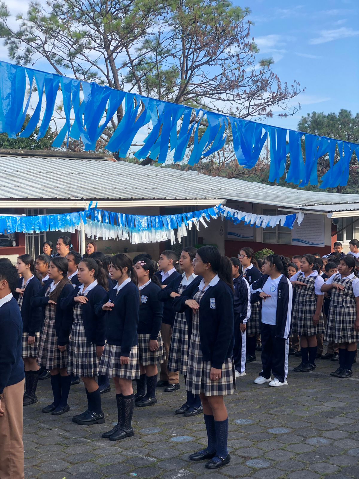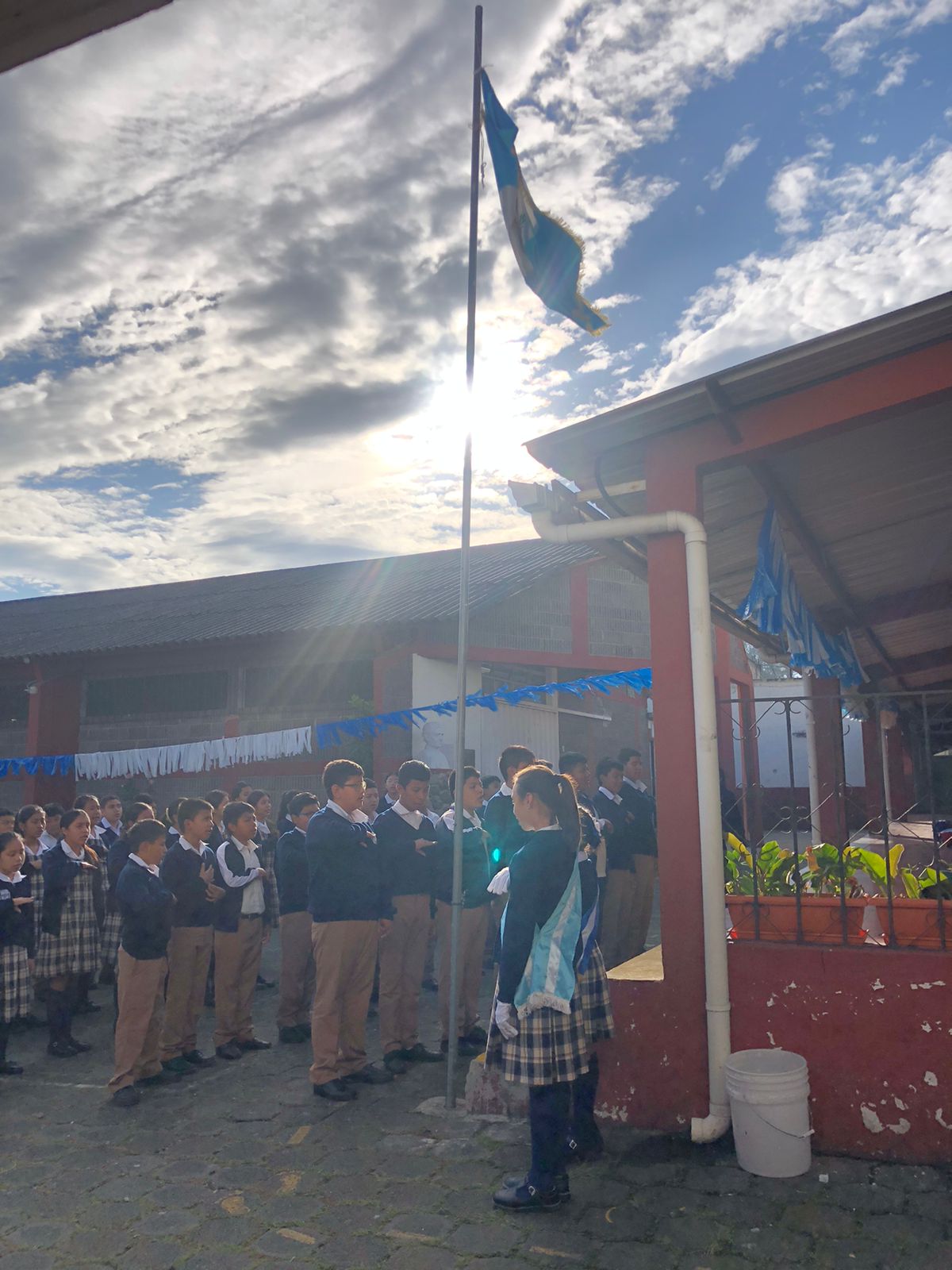 La jornada comenzó con la izada del pabellón nacional, un honor que recayó en los alumnos destacados de sexto primaria. Posteriormente, todos los presentes entonaron con entusiasmo el Himno Nacional de Guatemala, llenando el ambiente de orgullo y respeto hacia los símbolos patrios.