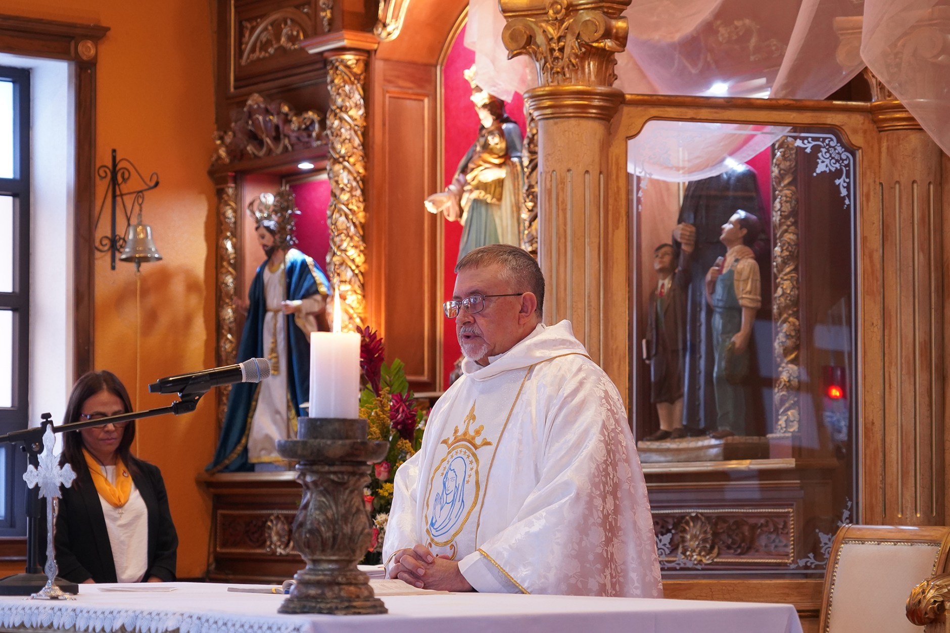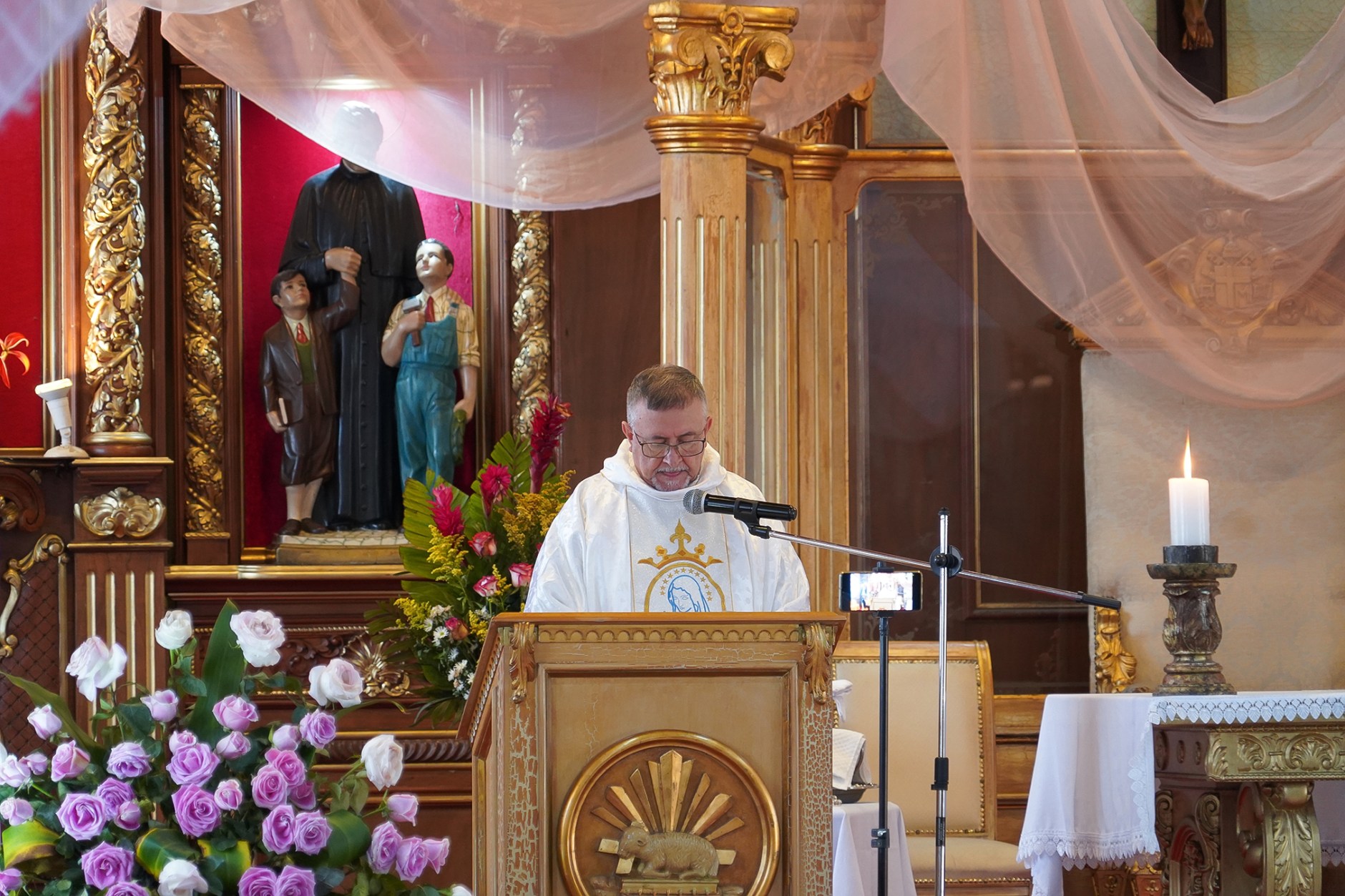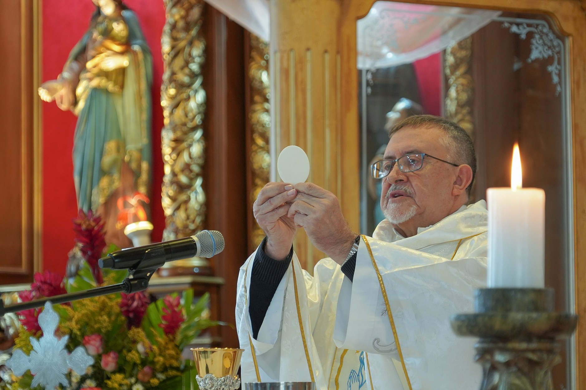 La jornada comenzó con la Santa Misa de las 7:00 a.m., presidida por el Padre Luis Corral, SDB, quien durante su homilía recordó que, aunque el Rosario es una oración profundamente mariana, en cada misterio se contempla la vida de Jesús, ya que —como destacó— «la Virgen siempre nos lleva y nos conduce hacia su Hijo».