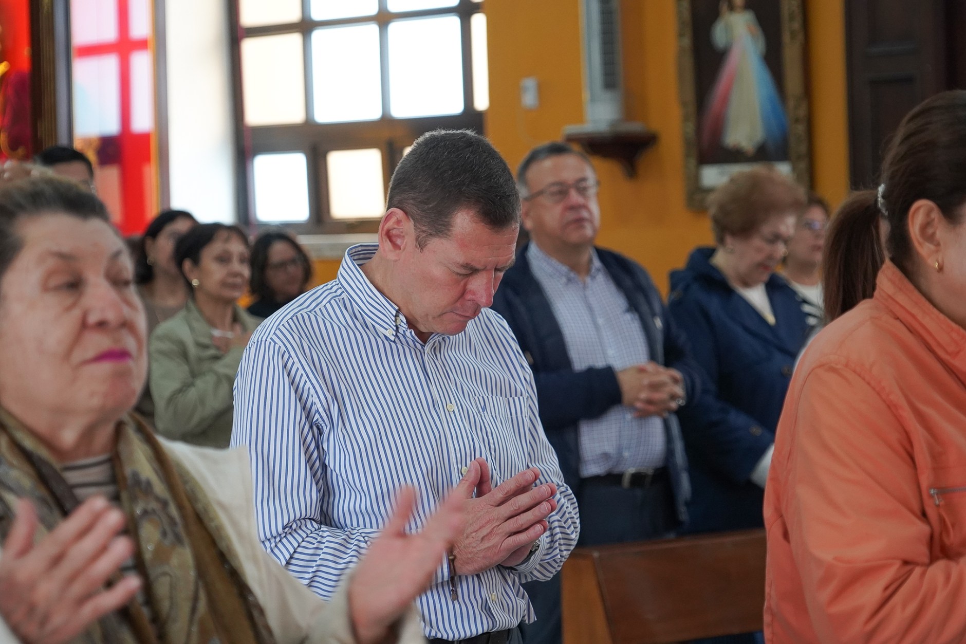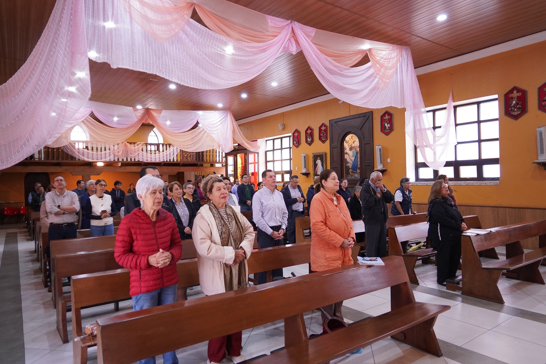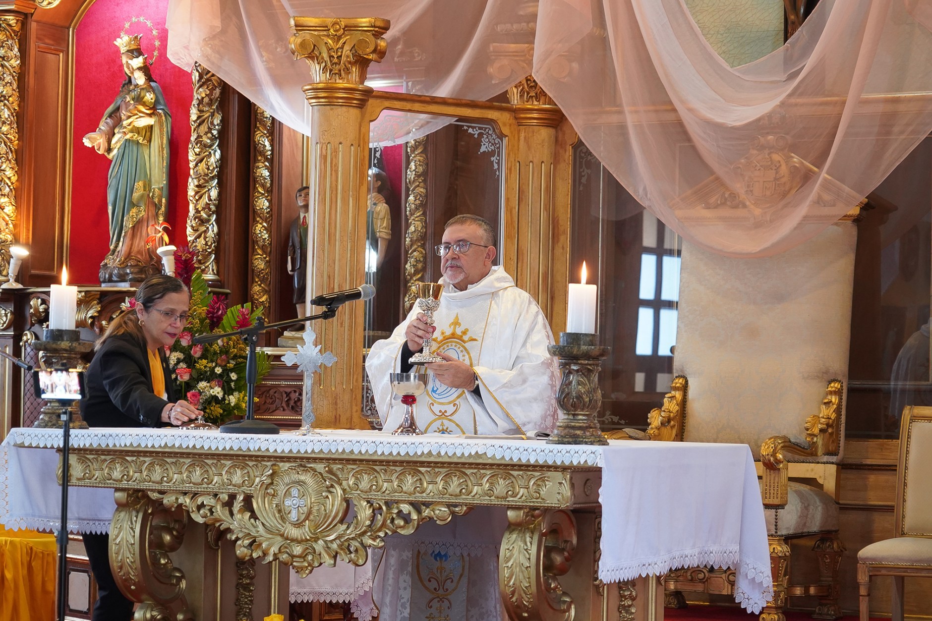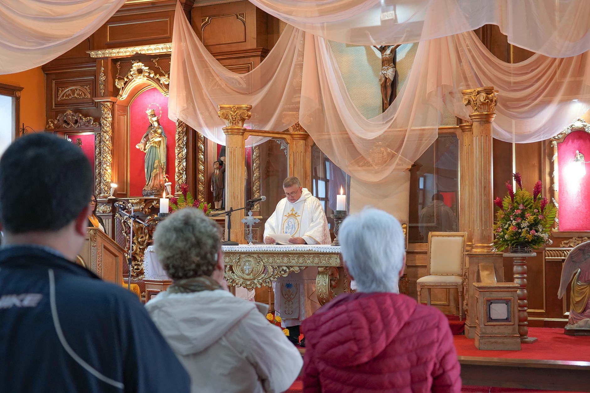 La jornada comenzó con la Santa Misa de las 7:00 a.m., presidida por el Padre Luis Corral, SDB, quien durante su homilía recordó que, aunque el Rosario es una oración profundamente mariana, en cada misterio se contempla la vida de Jesús, ya que —como destacó— «la Virgen siempre nos lleva y nos conduce hacia su Hijo».