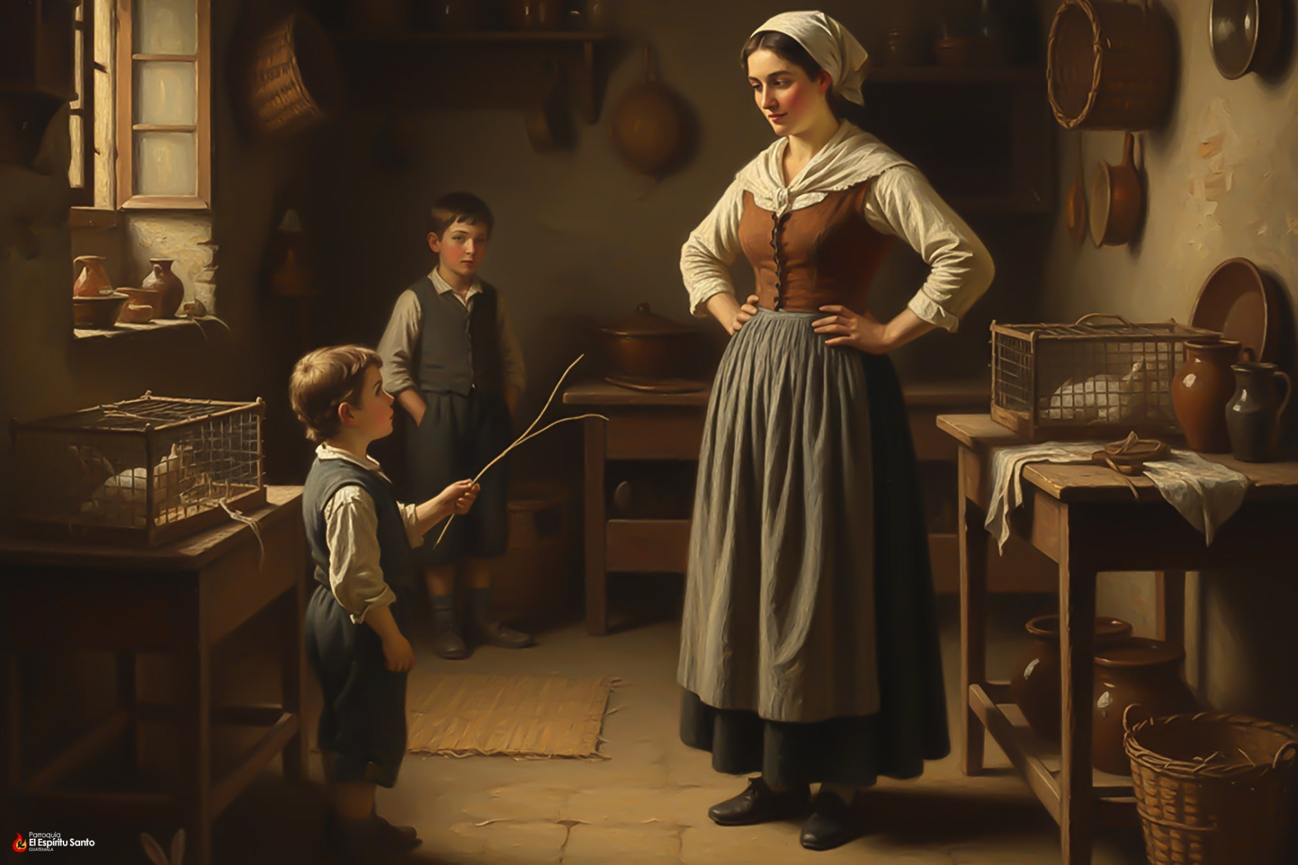 En un rincón de la cocina había una vara flexible, para castigar las faltas más graves. La mamá no la usó nunca, pero nunca la quitó de aquel rincón. Un día Juan armó un buen lío. Tal vez, por la prisa de ir a jugar, dejó abierta la conejera y todos los conejos se escaparon por los prados. Una fatiga pesada el volver a cazarlos a todos.