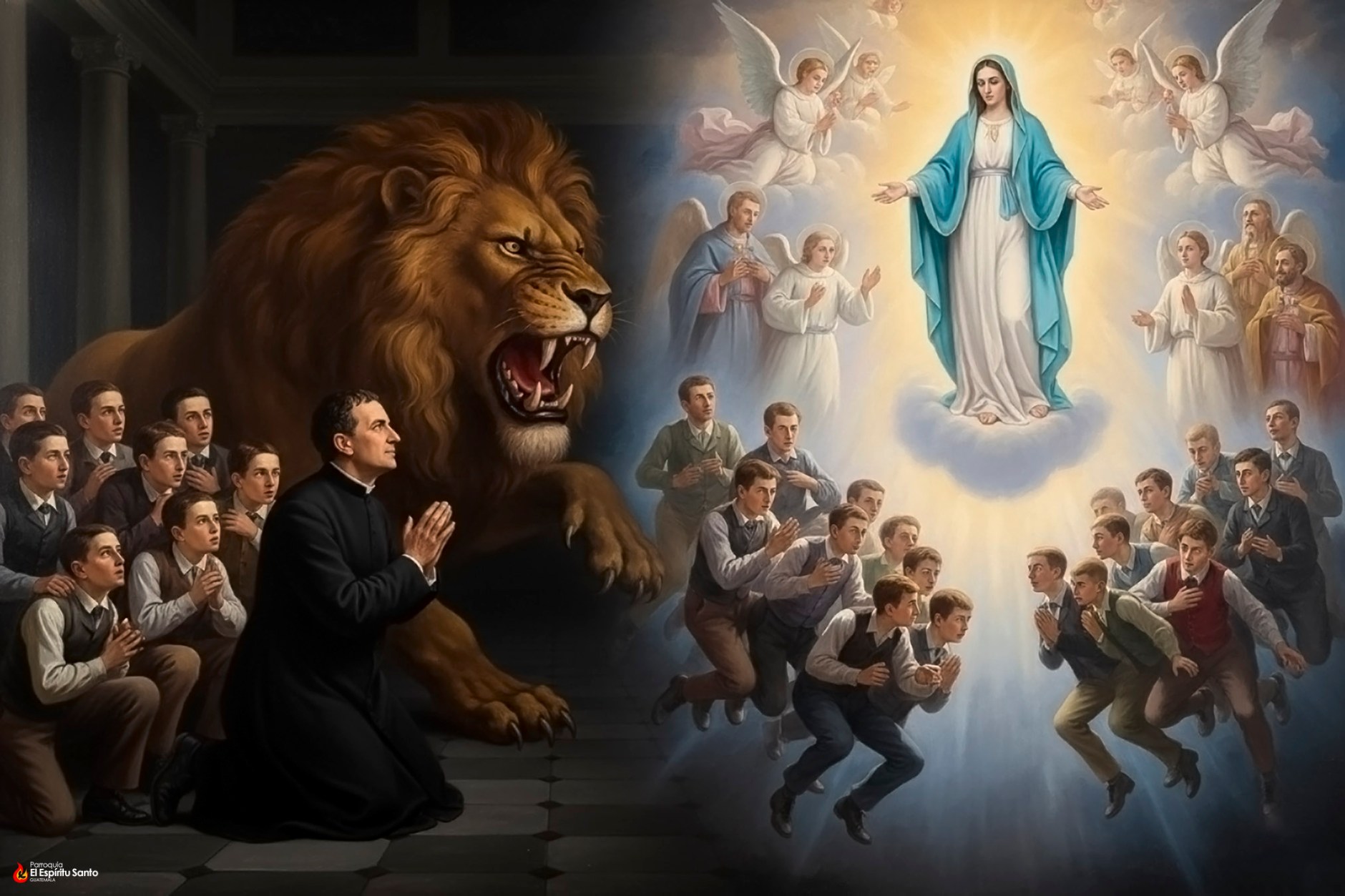 – Volvámonos hacia la imagen de la Santísima Virgen, arrodillémonos y recémosle a Ella con más devoción que otras veces para que nos libre de este peligro. Si se trata de un animal feroz, la Virgen lo vencerá, y si es un demonio, la Madre de Dios lo hará huir. No tengan miedo: la Madre Celestial se preocupa por nuestra salvación.