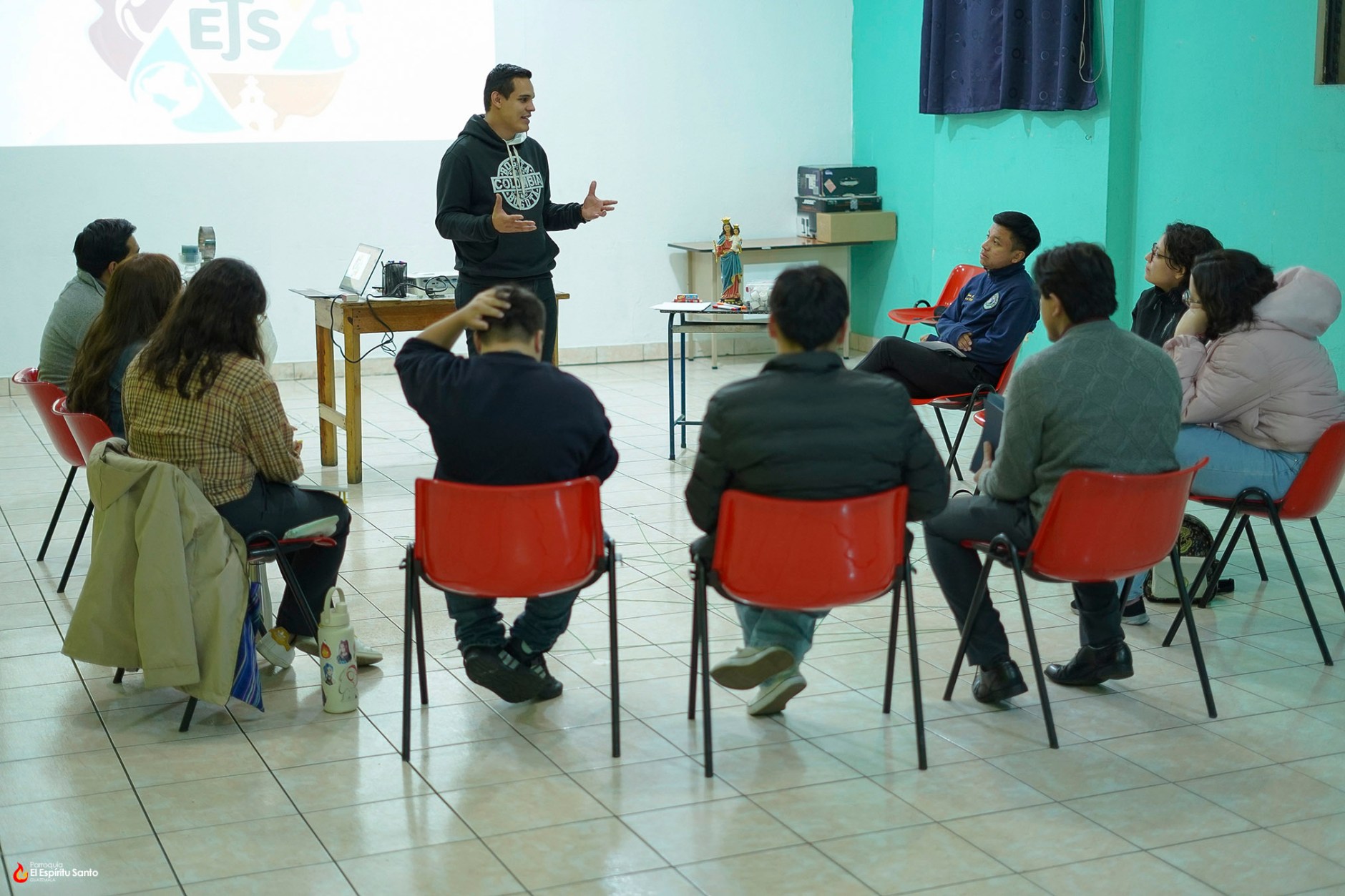 La jornada comenzó con una dinámica de integración en la que los participantes se presentaron y compartieron qué significa para ellos formar parte de este alegre grupo juvenil, creando un ambiente cercano y de confianza. Posteriormente, el diácono Miguel Ángel Rojas quien acompañó a los jóvenes en esta oportunidad, compartió con ellos un mensaje cargado de esperanza y cercanía.