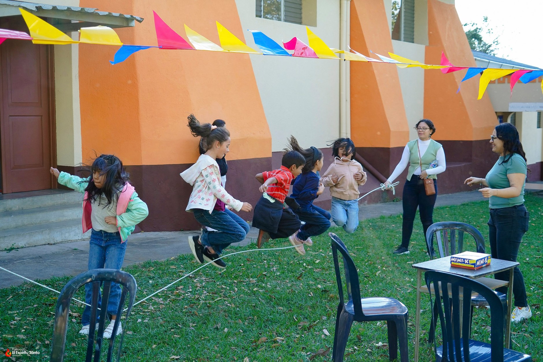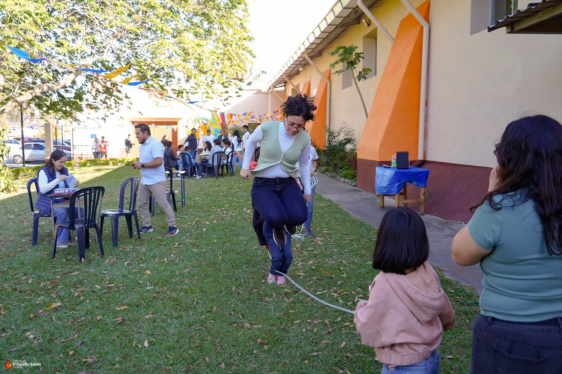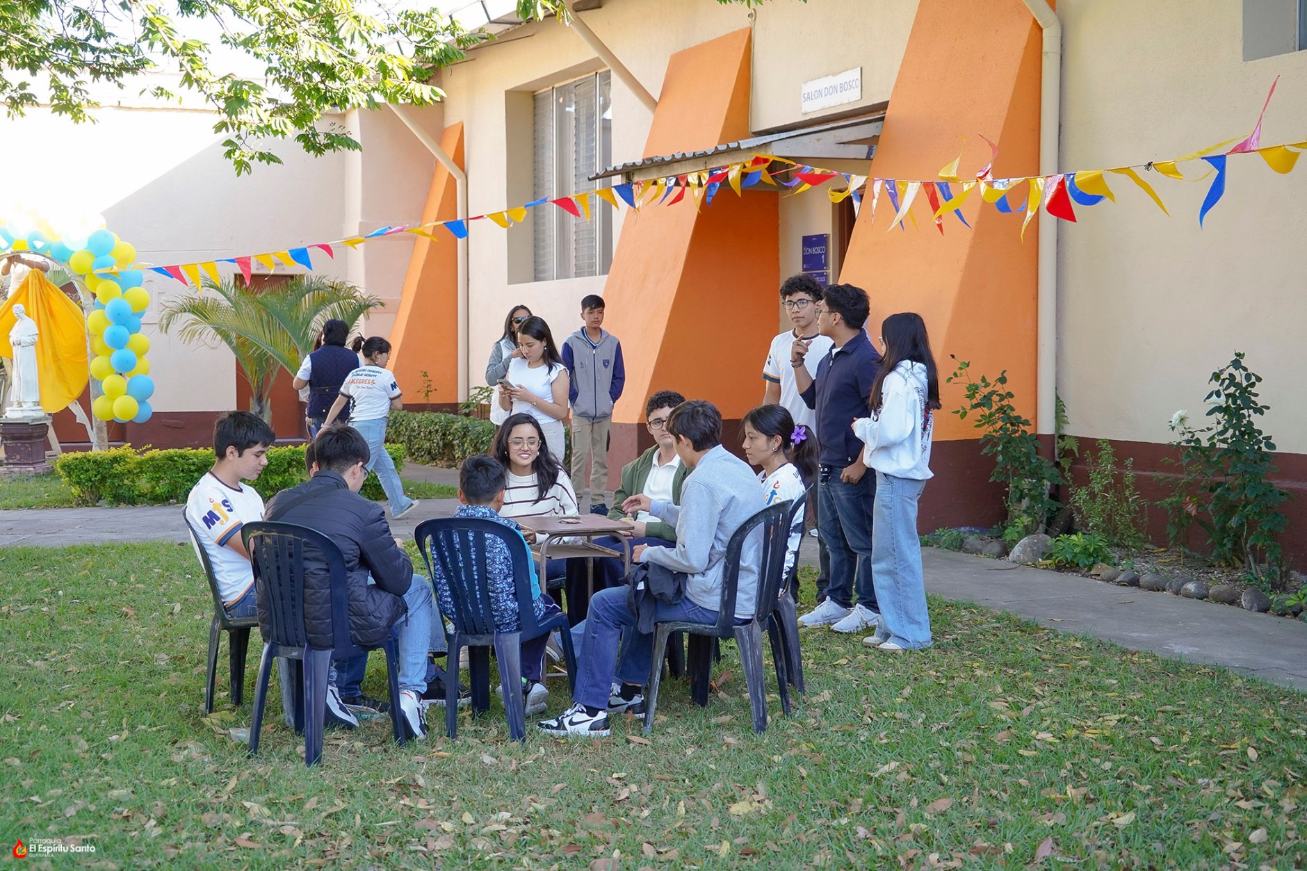Las actividades, coordinadas por nuestra Pastoral Juvenil, iniciaron en el Jardín Laudato Sí. El espacio se llenó de vida con una tarde de deportes, salto de cuerda y juegos de mesa, todo ambientado con música salesiana que reforzó el espíritu familiar del encuentro, en el cual se contó también con la participación de los niños y jóvenes de FunJesús.