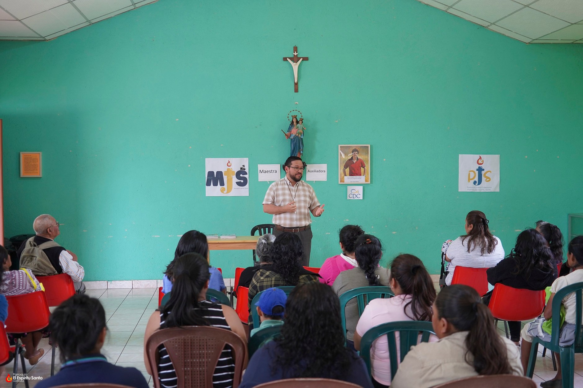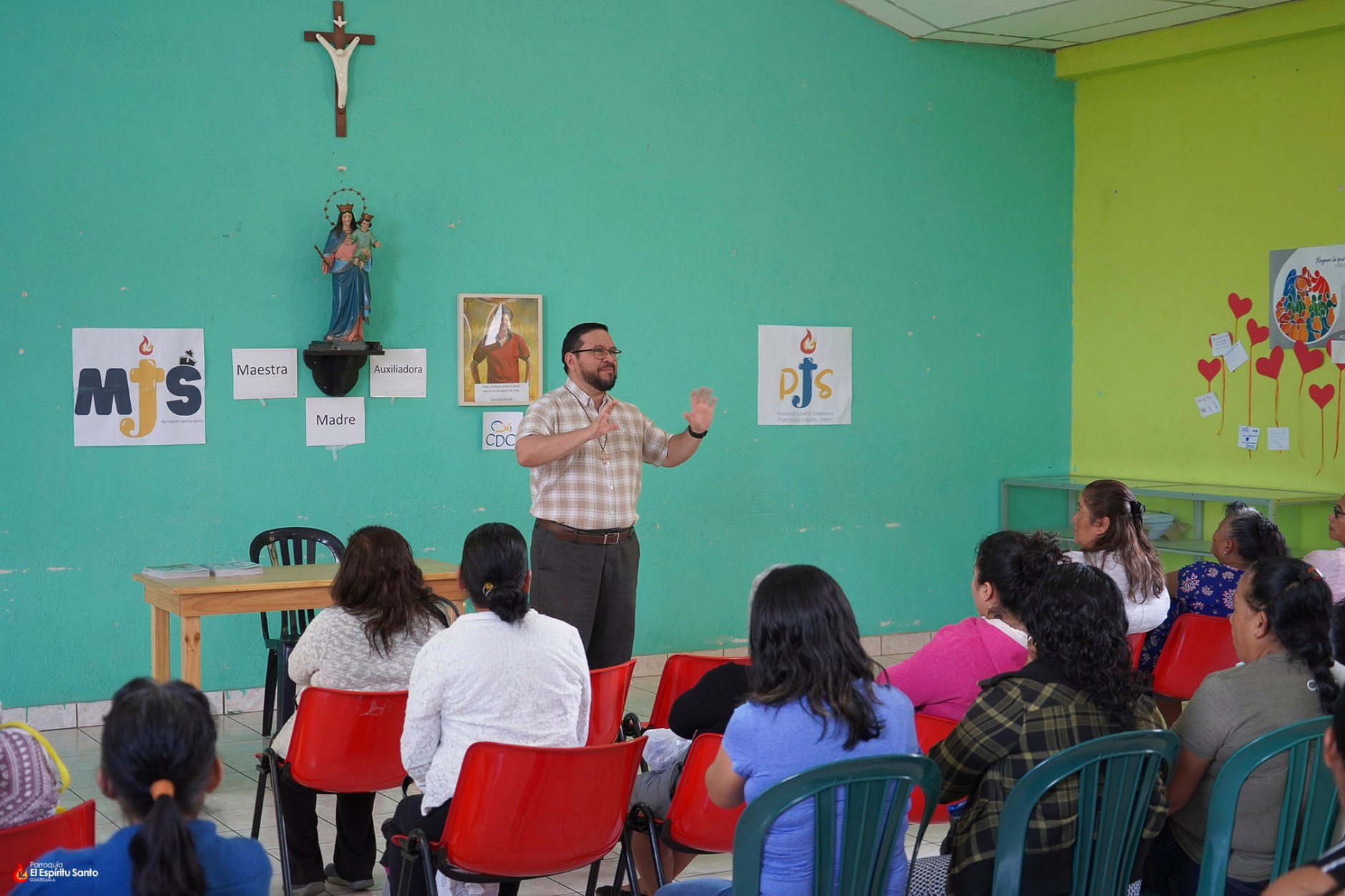 La actividad inició con una breve charla a cargo de nuestro vicario parroquial, padre Marvin Mena, SDB, quien compartió un mensaje cercano y alentador, recordando que en medio de las dificultades Dios nunca abandona a sus hijos y que la comunidad parroquial camina unida, sosteniéndose mutuamente.