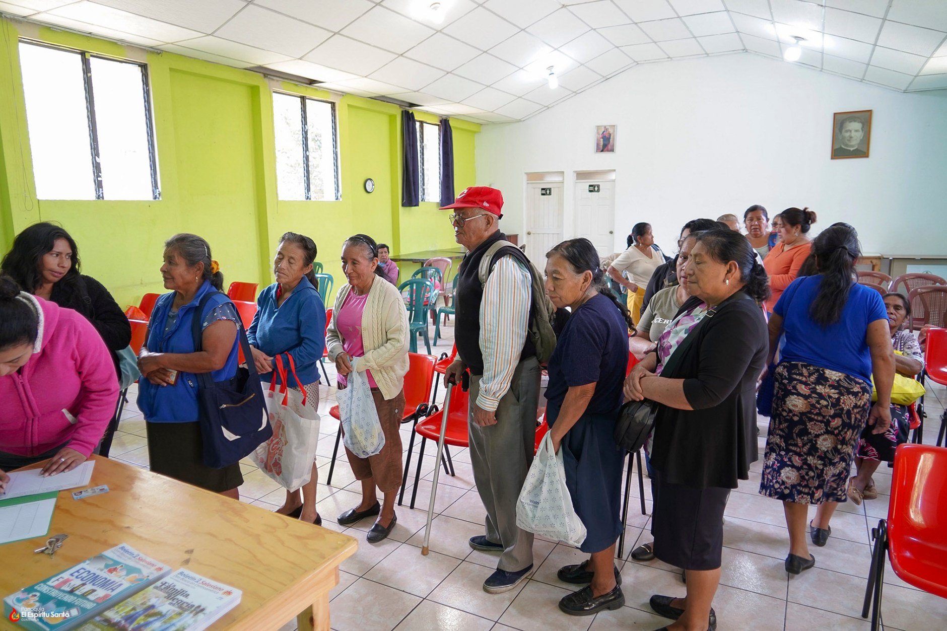 Al finalizar el encuentro, cada asistente recibió una bolsa preparada con dedicación, conteniendo arroz, frijol, lentejas en lata, pastas y otros productos básicos para el hogar. Esta acción reafirma el compromiso de nuestra parroquia con la caridad organizada y el acompañamiento fraterno.