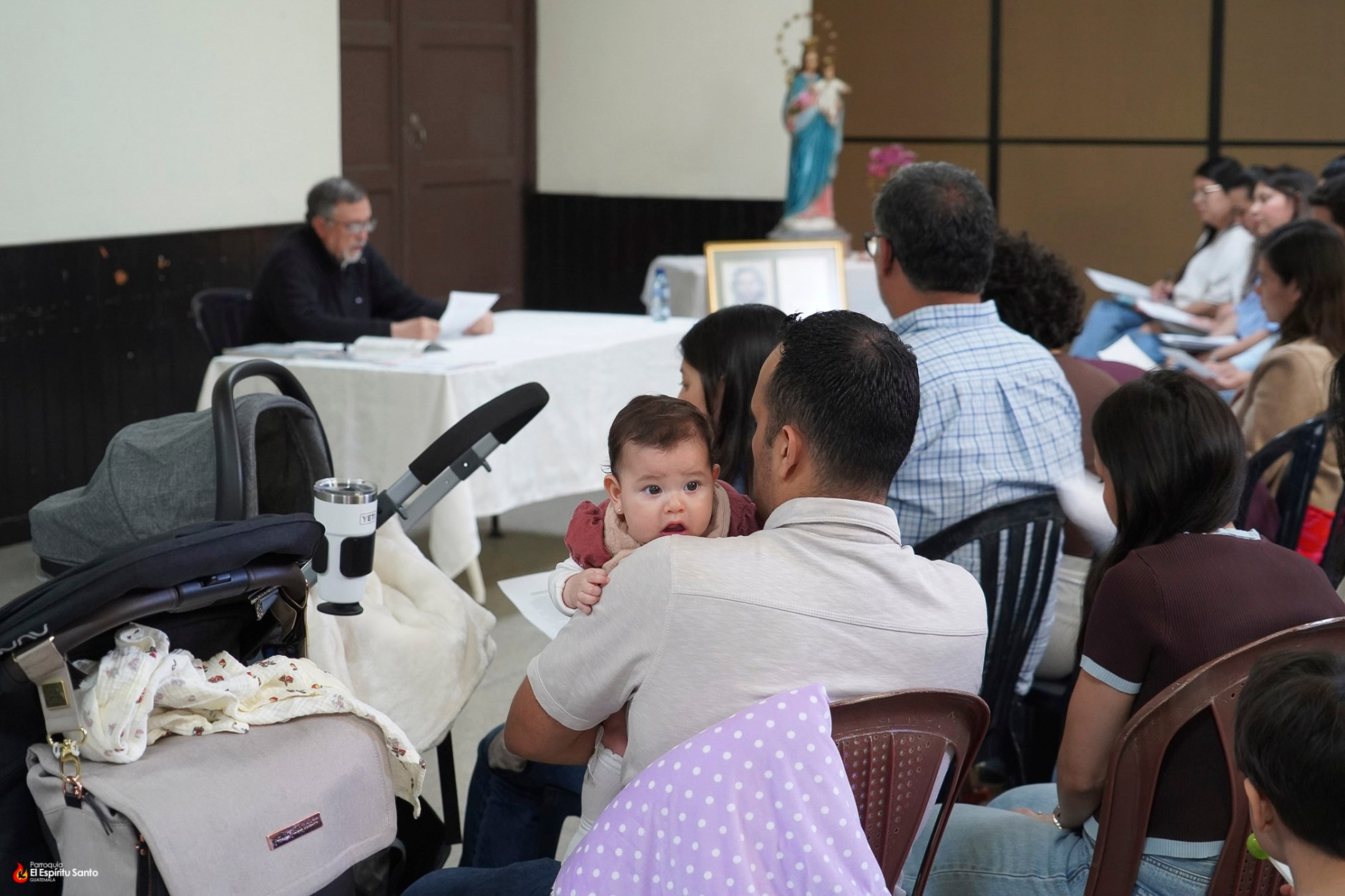 El sábado 21 de febrero se realizaron las Charlas Prebautismales en nuestra parroquia, dirigidas por nuestro párroco, el padre Luis Corral, SDB, reuniendo a padres y padrinos que se preparan para acompañar a los pequeños en el sacramento del bautismo.