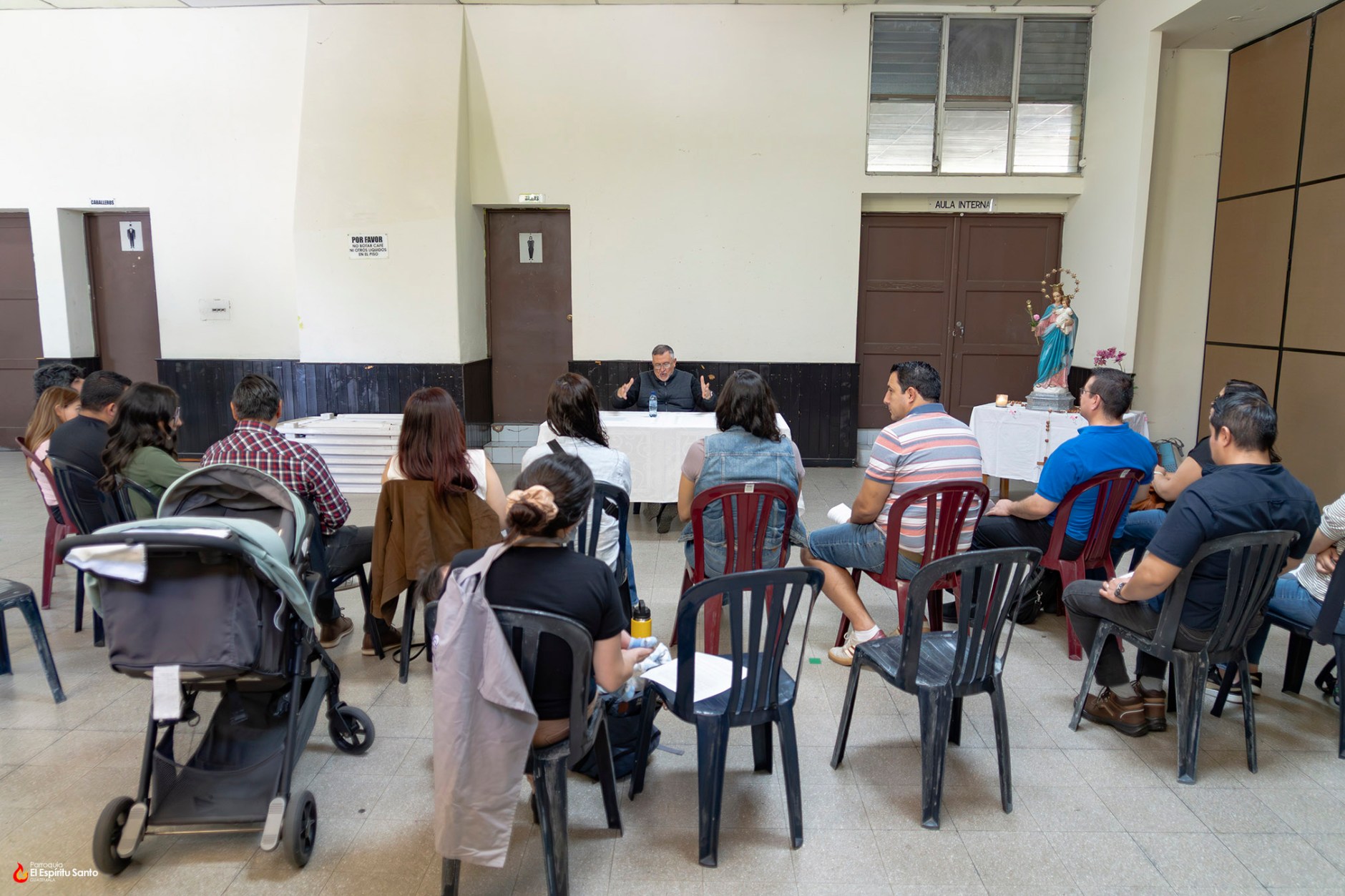 El sábado 14 de marzo se realizaron las Charlas Prebautismales del mes en la parroquia, impartidas por nuestro párroco, el padre Luis Corral, SDB. Durante una hora, padres y padrinos se reunieron para prepararse y reflexionar sobre el significado y la responsabilidad que conlleva el sacramento del Bautismo.
