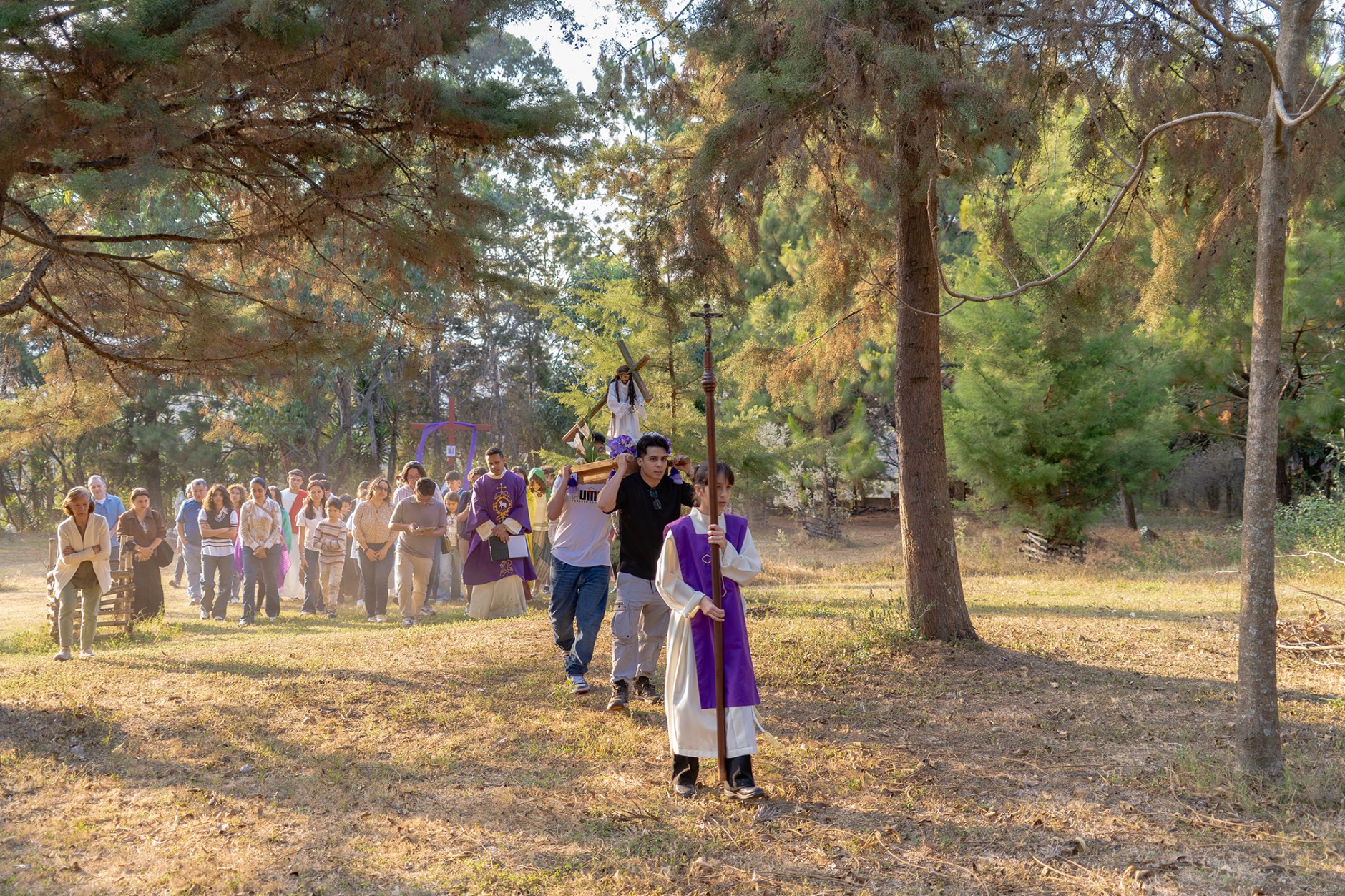 La actividad, organizada por el Diácono Miguel Ángel Rojas, reunió a jóvenes que recorrieron las 14 estaciones, cada una preparada por distintos grupos juveniles. Los participantes elaboraron altares, alfombras de flores y pino, e incluso representaron escenas propias de cada estación, creando un ambiente significativo y cercano. Las meditaciones, adaptadas a un lenguaje juvenil, favorecieron la reflexión y una participación activa.