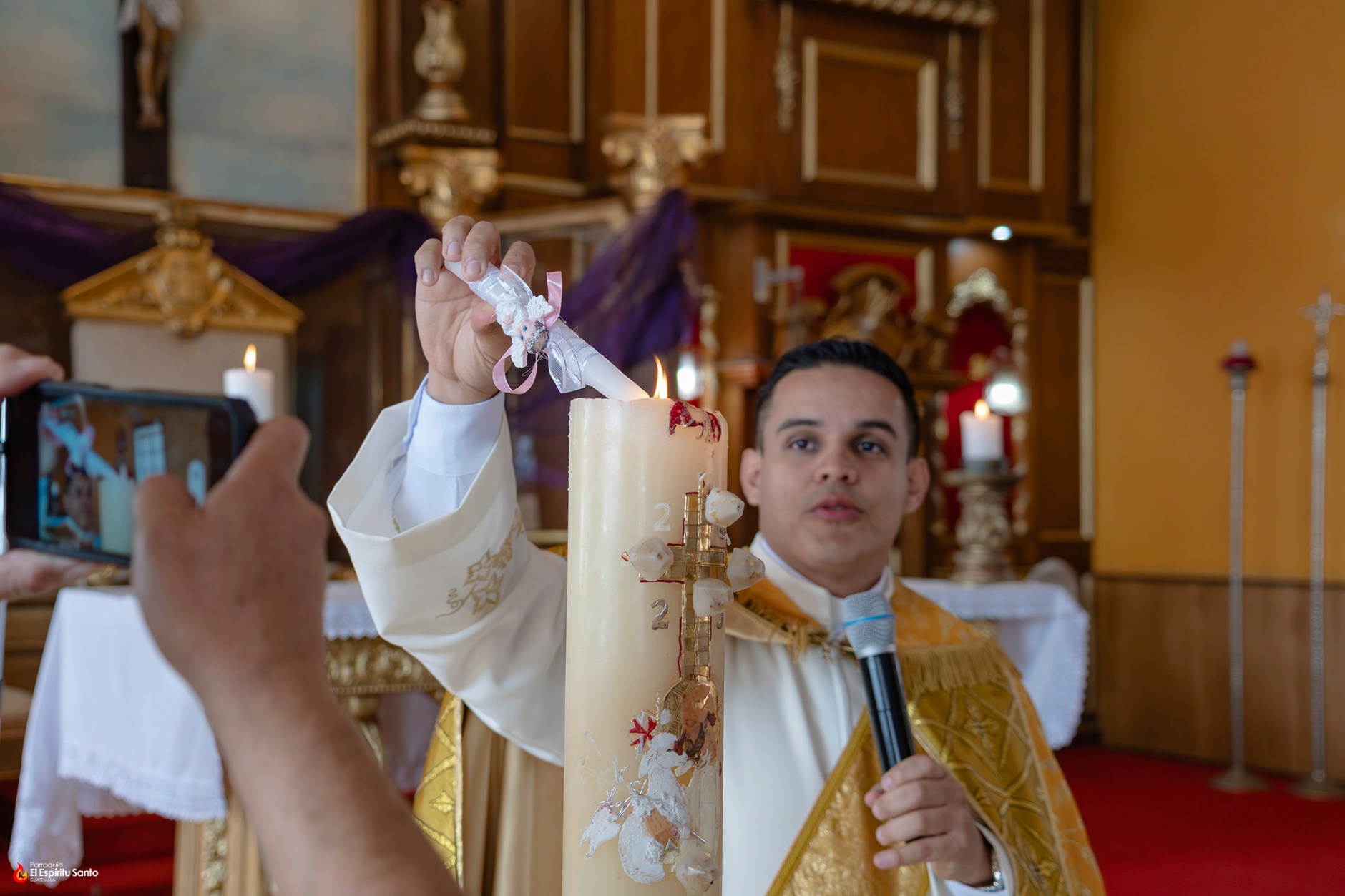 La celebración inició en la puerta del templo, donde los pequeños fueron recibidos como signo de su incorporación a la comunidad de fe. Posteriormente, se desarrolló la liturgia de la palabra, que preparó a los presentes para el momento central del sacramento. Durante el rito, se llevó a cabo la bendición del agua y la unción con el Santo Crisma, signos visibles de la gracia de Dios que acompaña desde ahora la vida de cada niño bautizado.