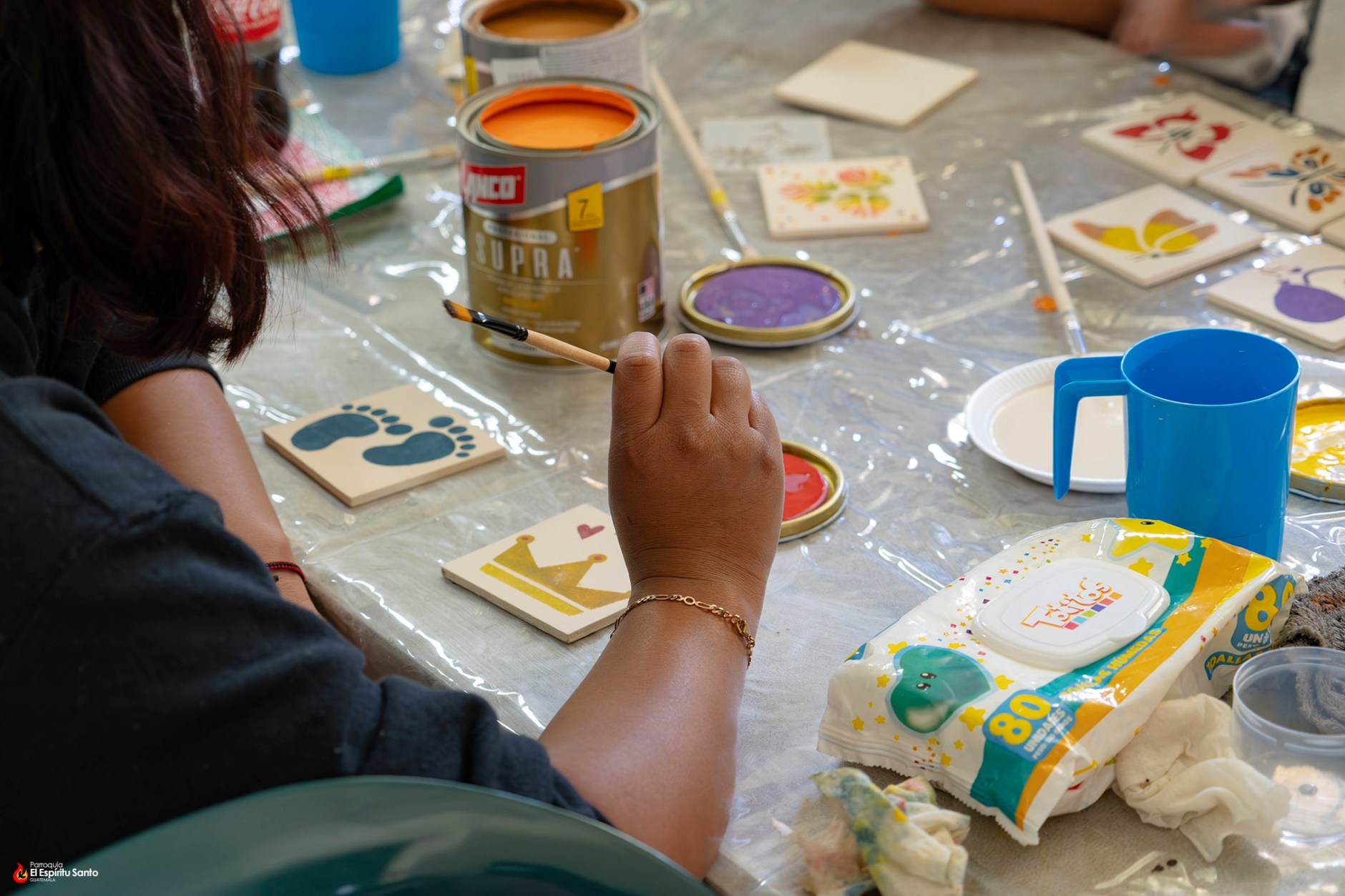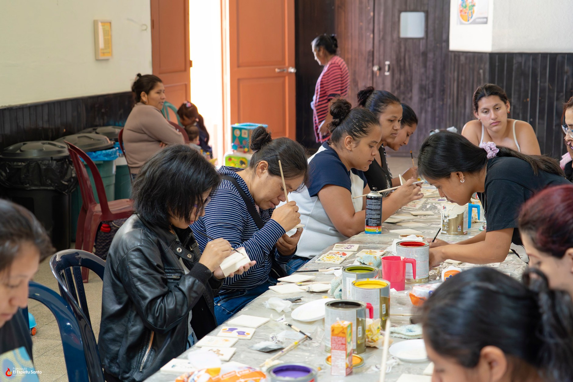 Durante la actividad, se desarrolló una clase de pintura en la que las participantes elaboraron y decoraron portavasos, demostrando entusiasmo y creatividad en cada detalle. Todos los materiales fueron proporcionados por el proyecto, facilitando un espacio accesible y motivador para cada participante.