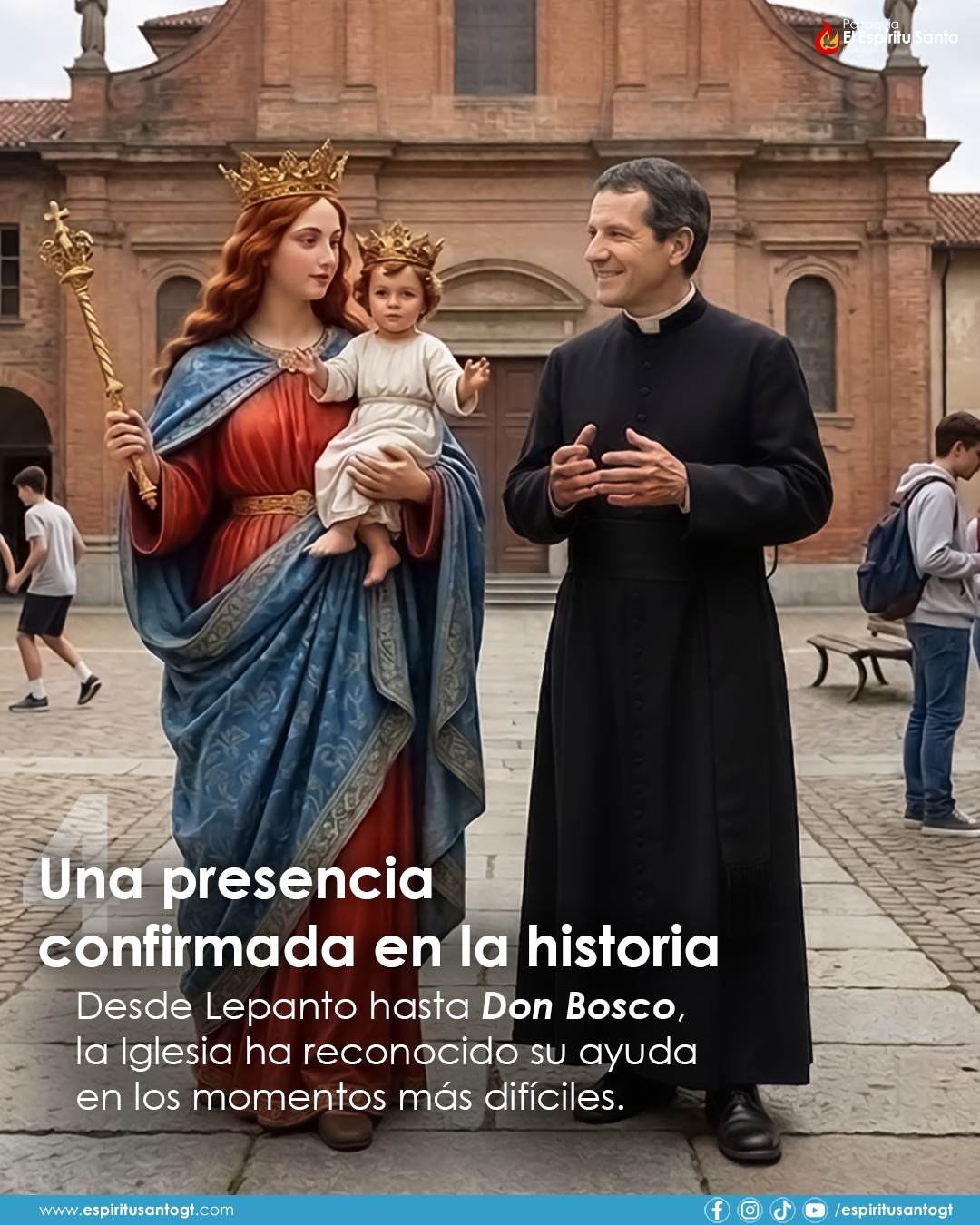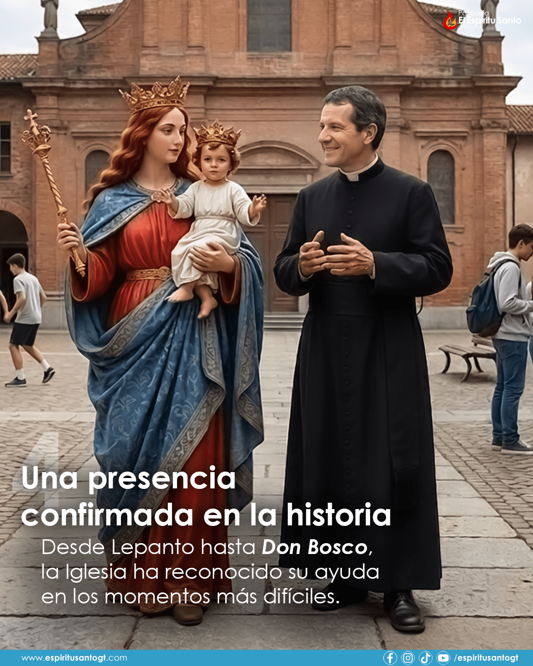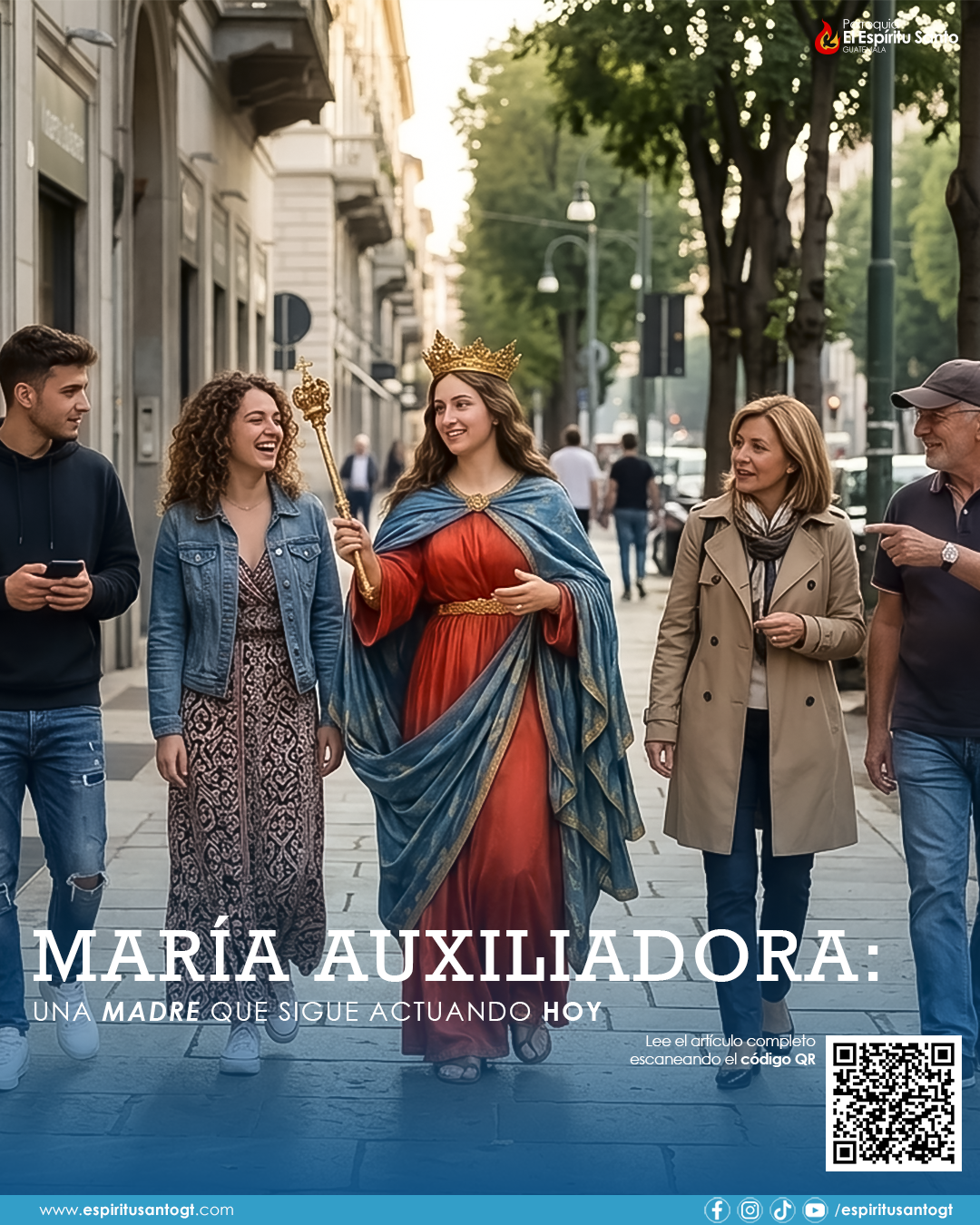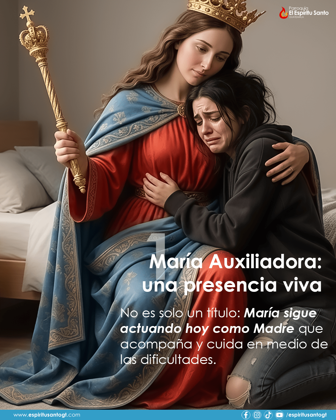 En la tradición católica, llamar a María «Auxiliadora» (Auxilium Christianorum) no es solo una expresión de piedad. Es reconocer una presencia viva: la de una Madre que no pertenece al pasado, sino que sigue actuando en la historia y acompañando a los discípulos de su Hijo.