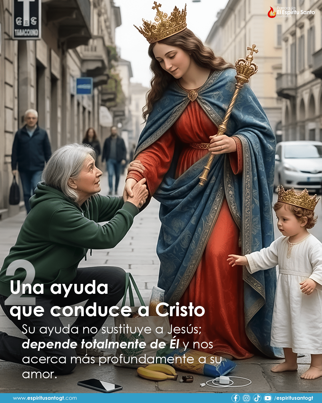 Este auxilio, sin embargo, debe entenderse correctamente. La Iglesia es muy precisa al afirmar que la acción de María no compite con Cristo; depende enteramente de Él.