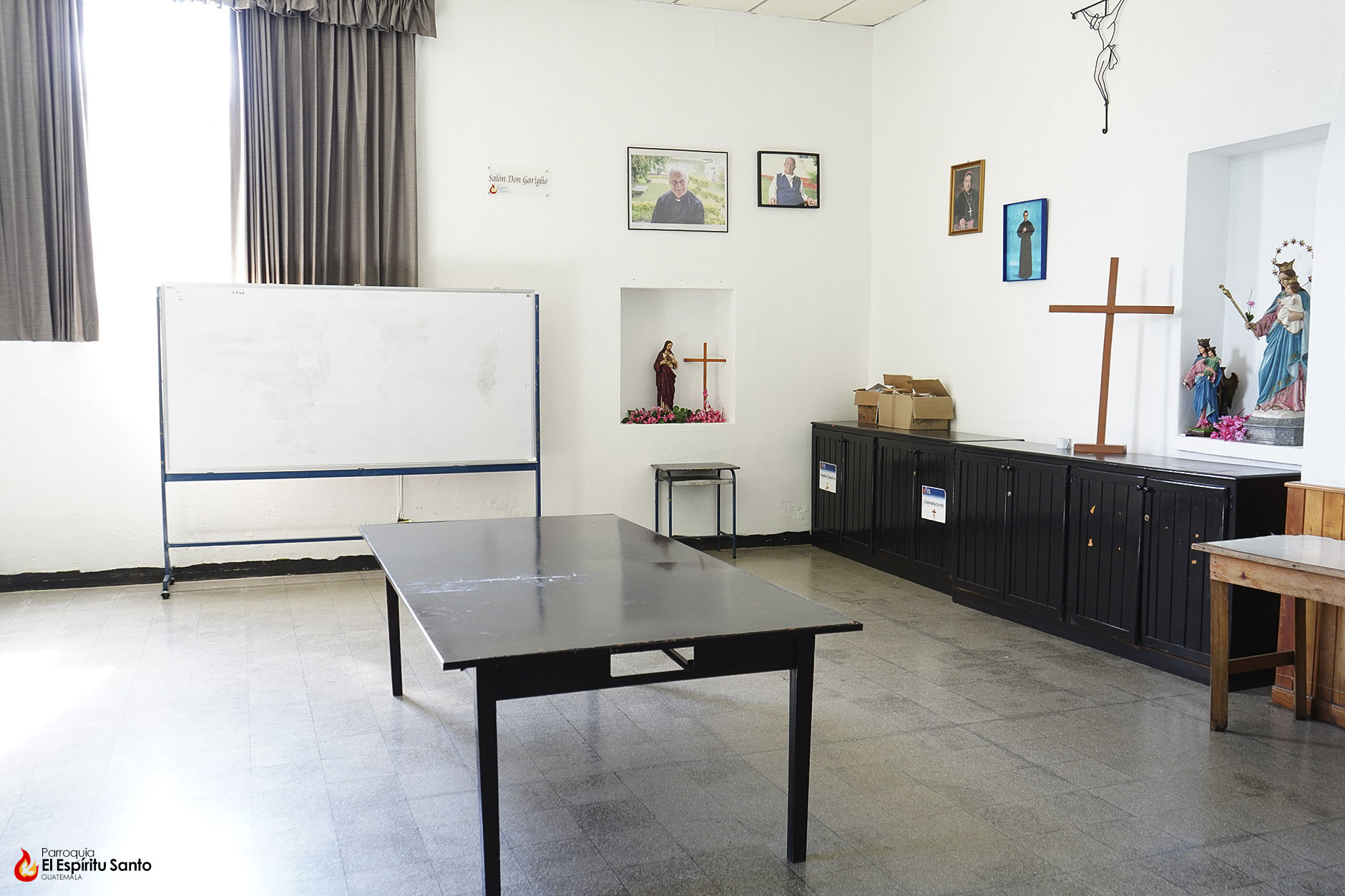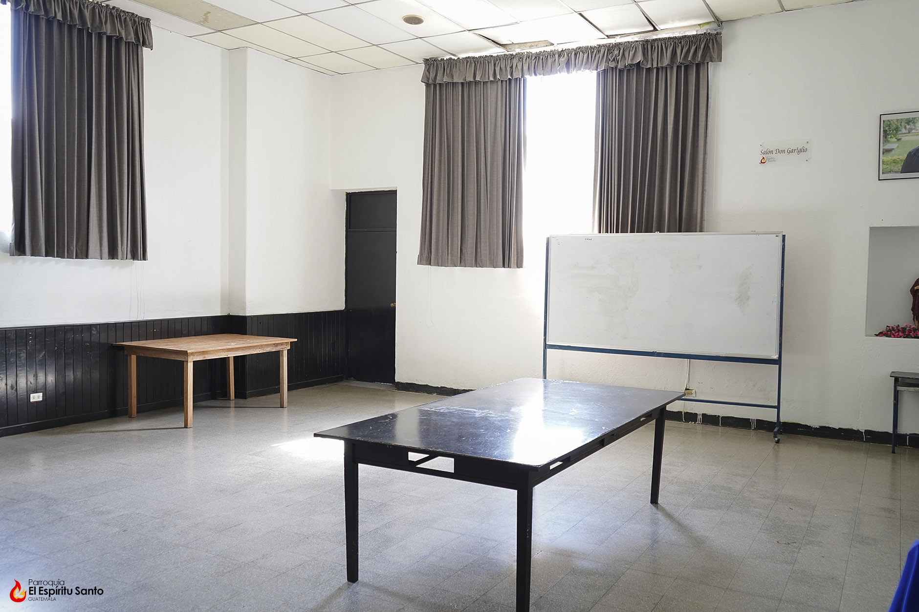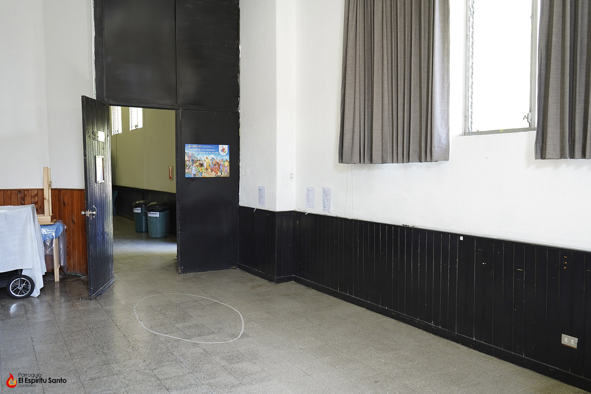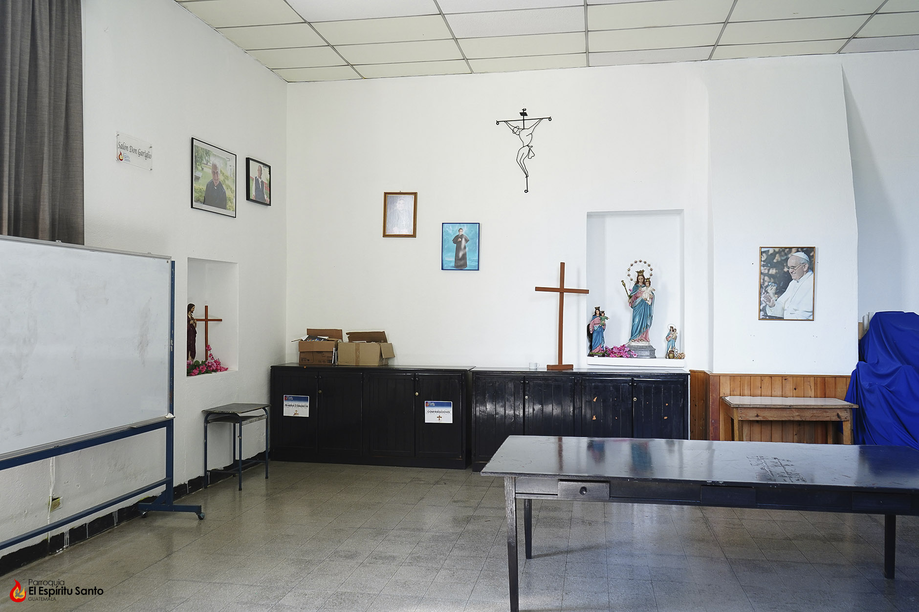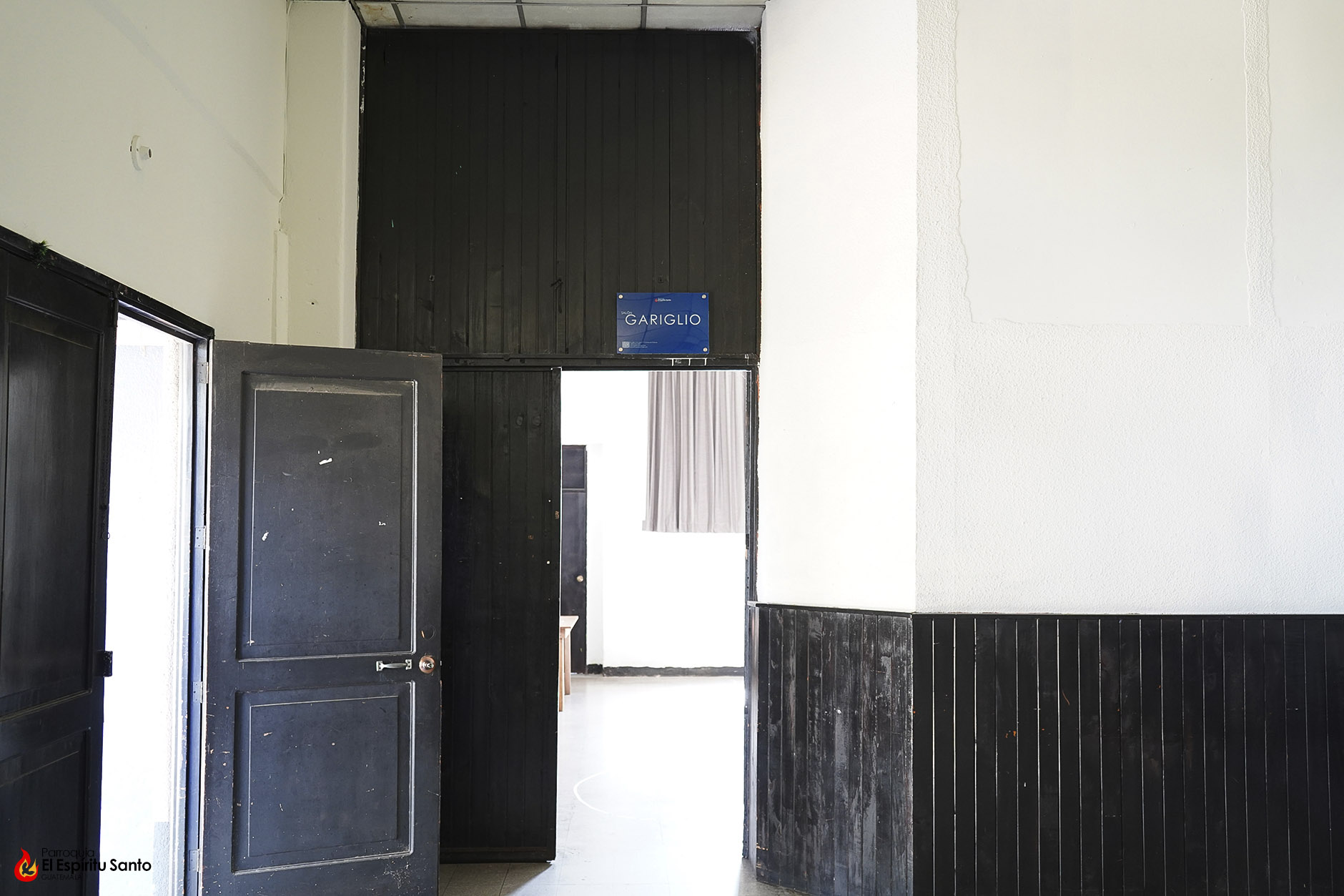 El nombre del salón es en honor al fundador y primer párroco de esta iglesia: Padre Antonio Garigilio, SDB.