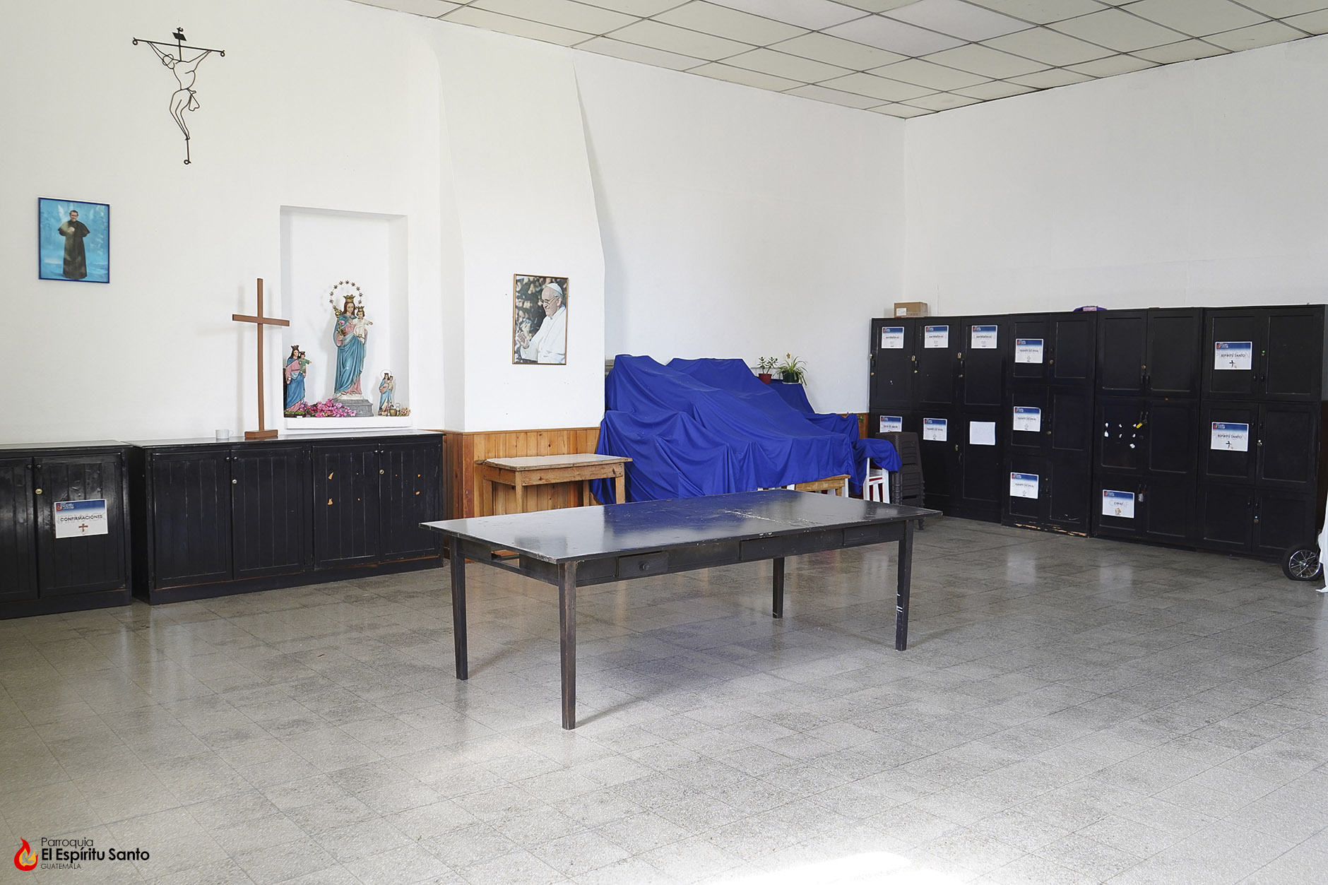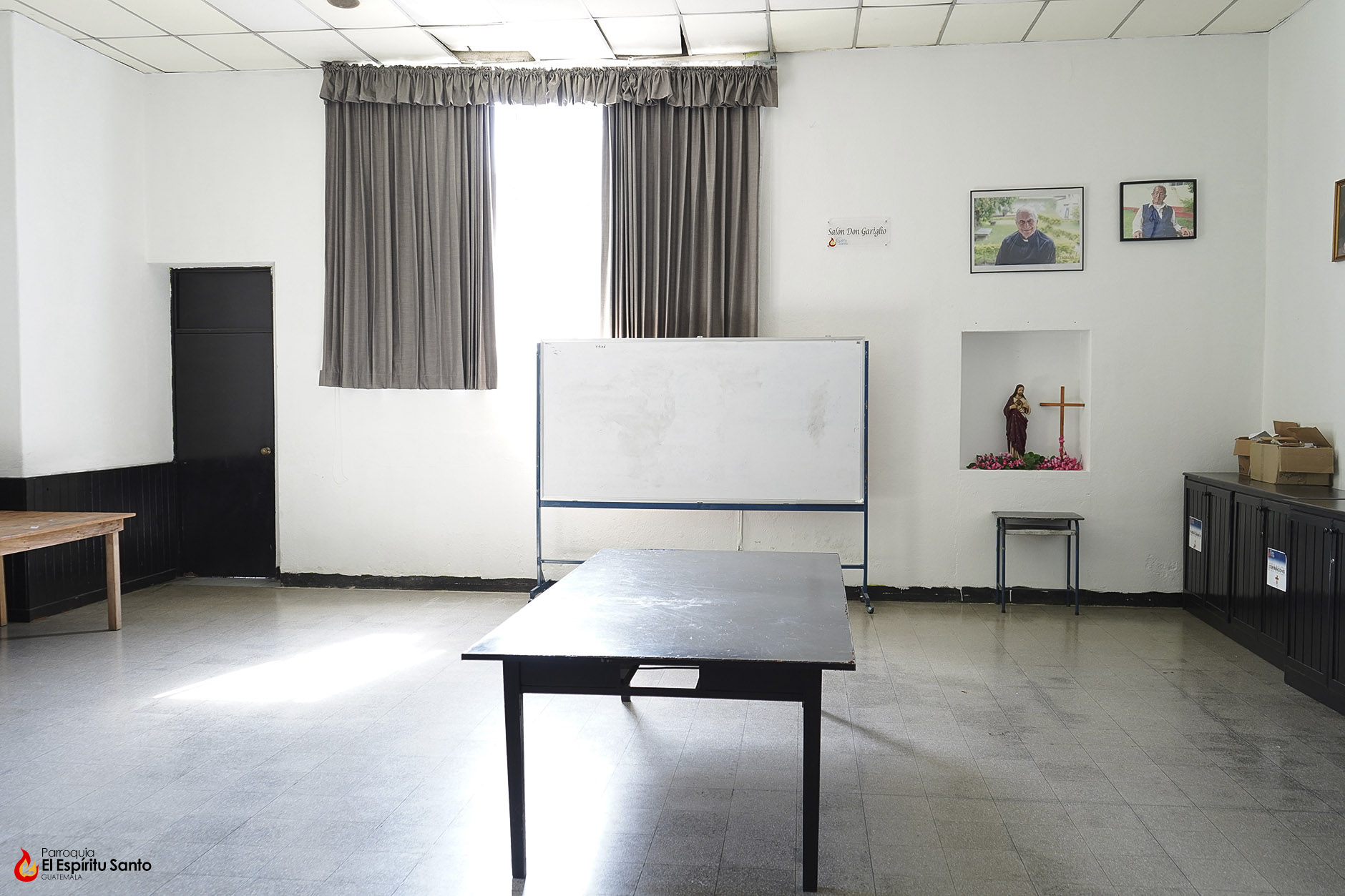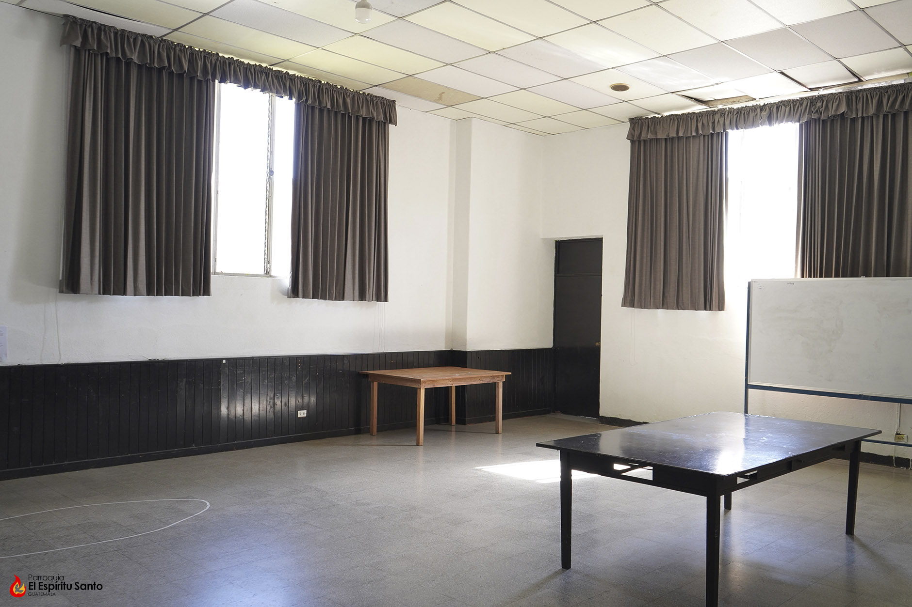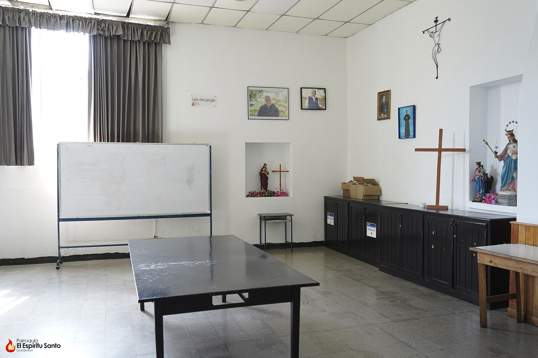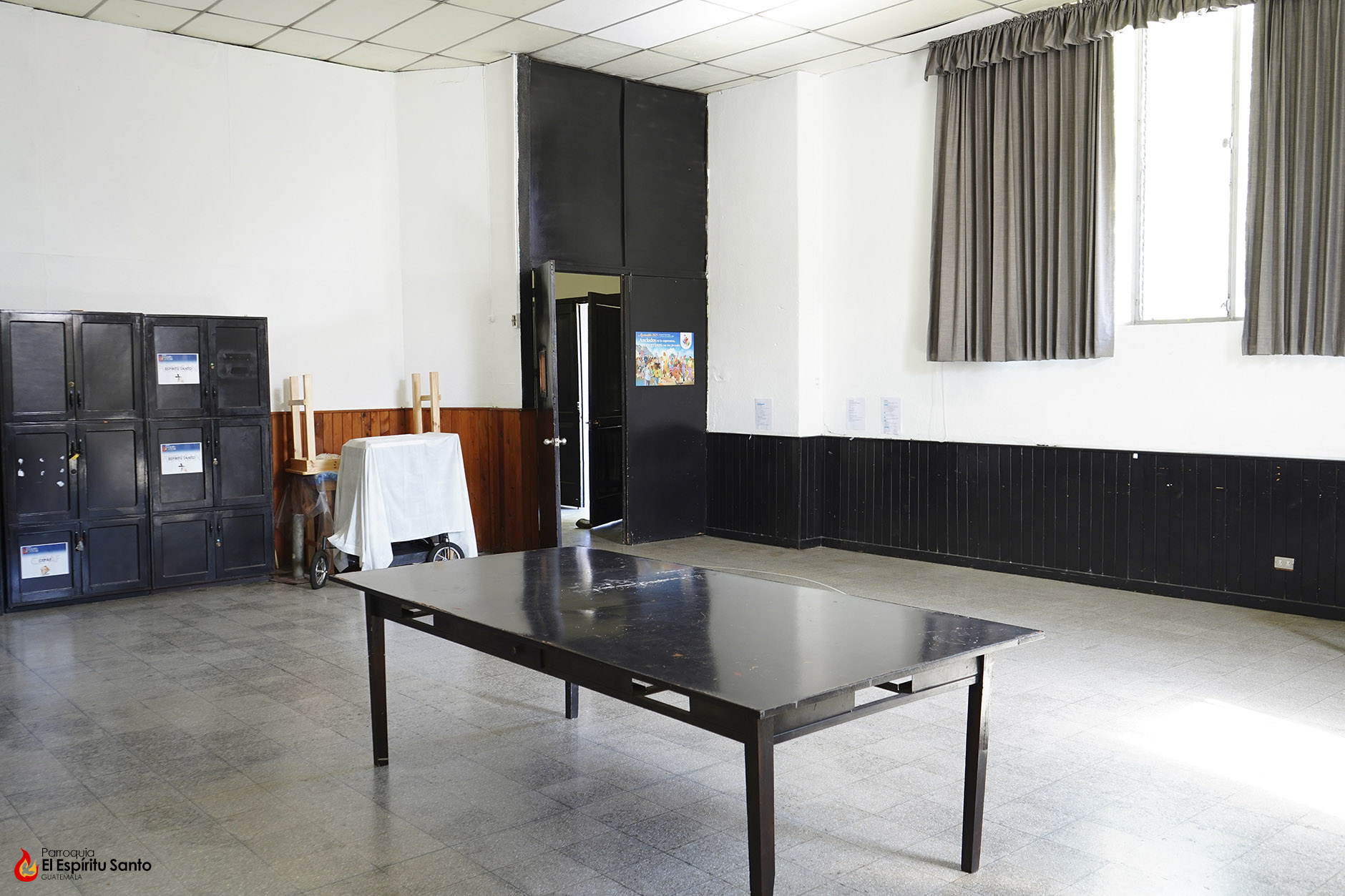 El nombre del salón es en honor al fundador y primer párroco de esta iglesia: Padre Antonio Garigilio, SDB.