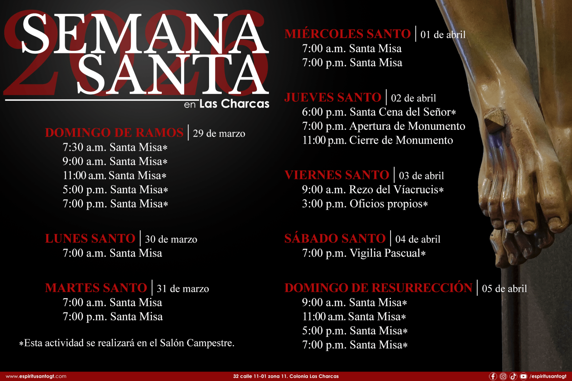 En la Parroquia El Espíritu Santo se celebra la Santa Misa a diario, a continuación te compartimos los horarios para que puedas asistir a las mismas: