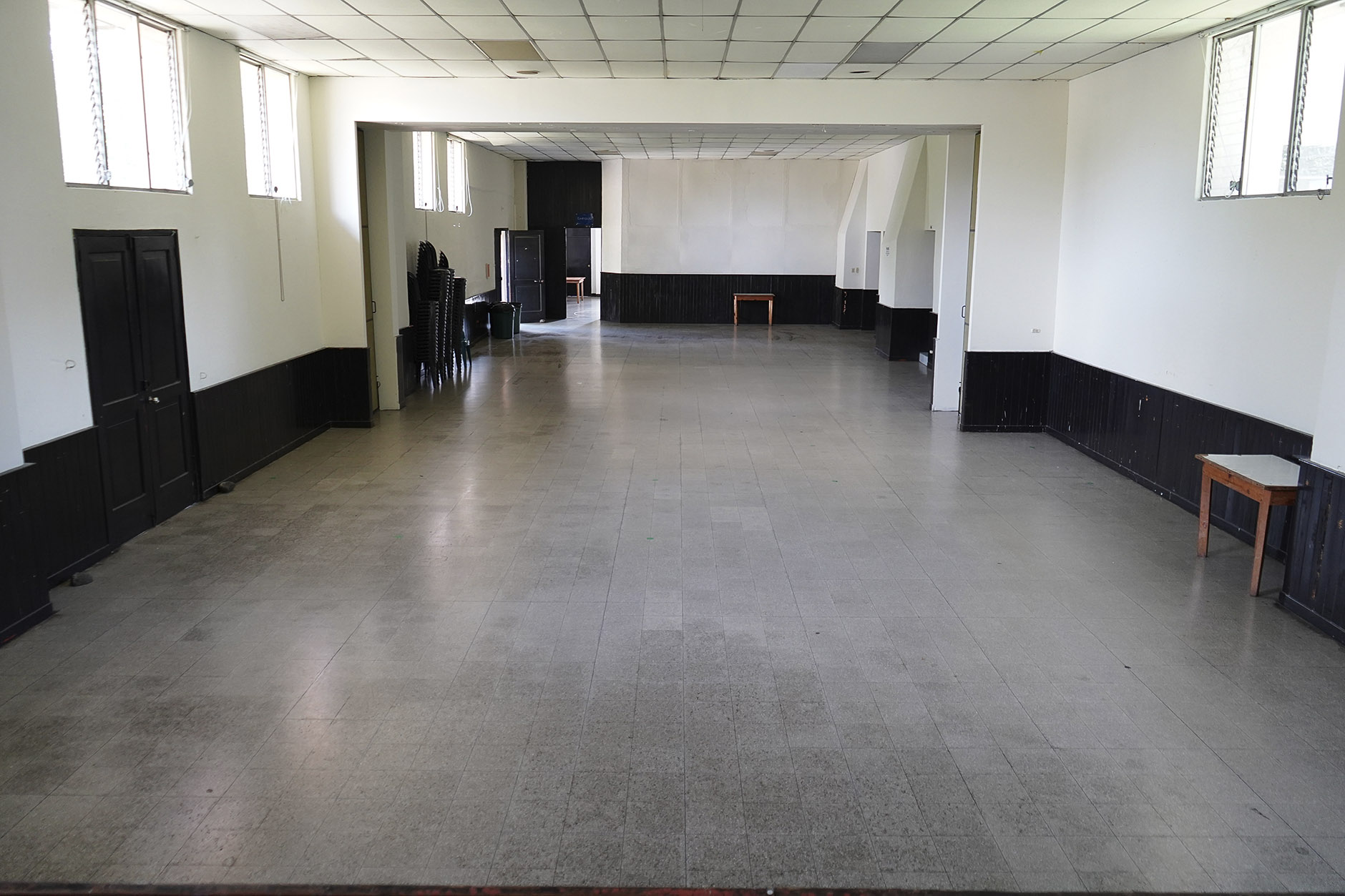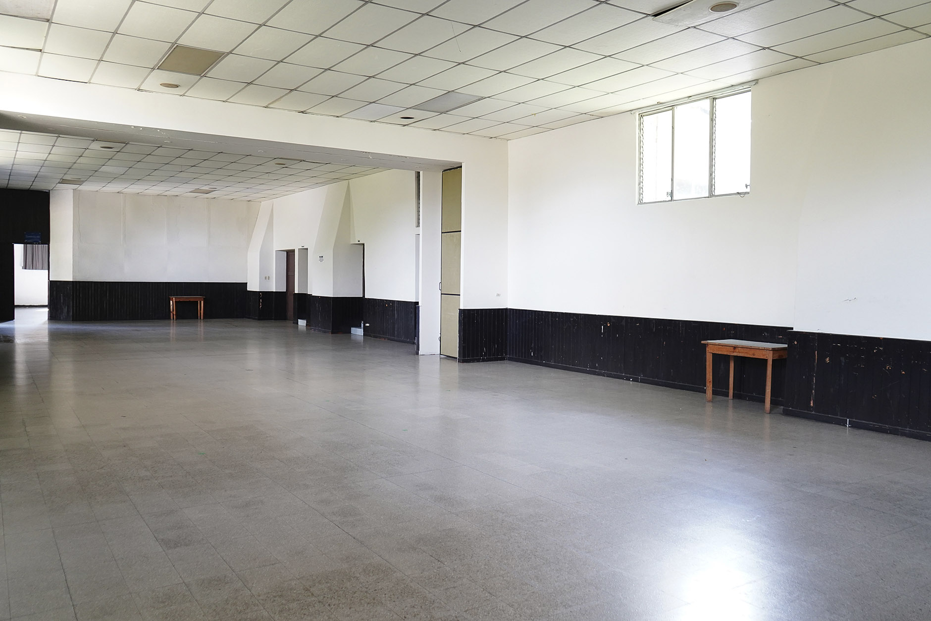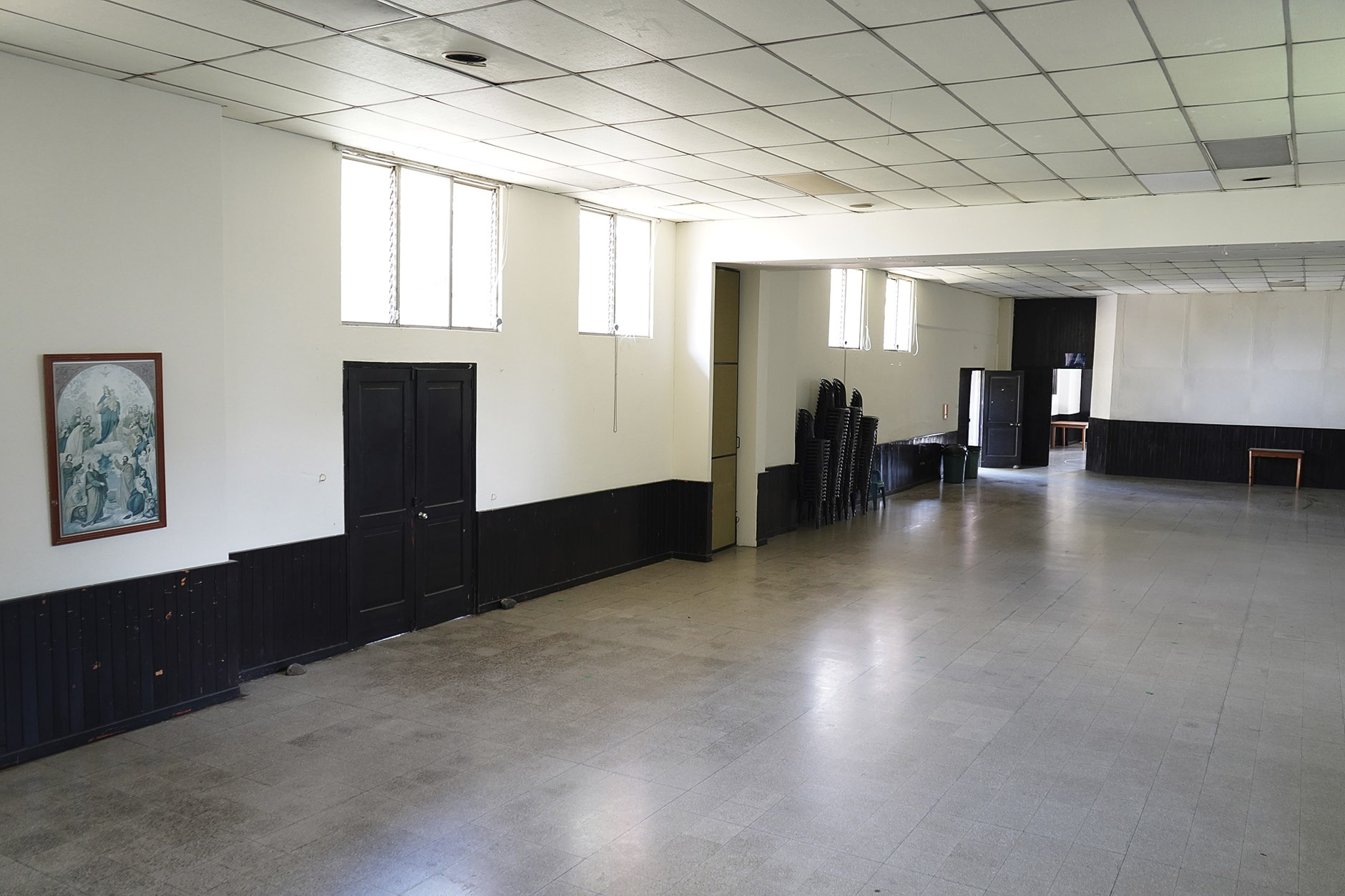 Este es el salón de mayor capacidad con que contamos. Cuenta con servicios sanitarios para mujeres y hombres, además de un escenario elevado en uno de sus extremos.
