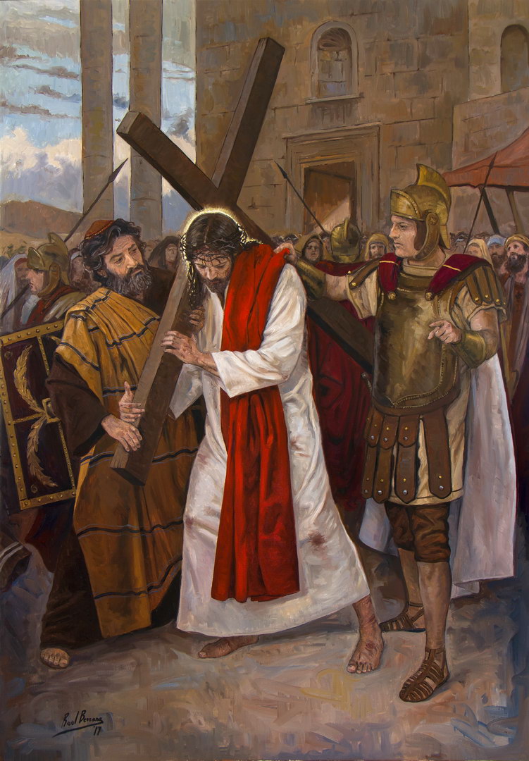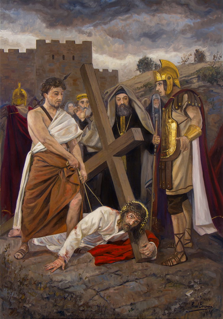 Quinta Estación. El Cirineo ayuda a Jesús a llevar la cruz